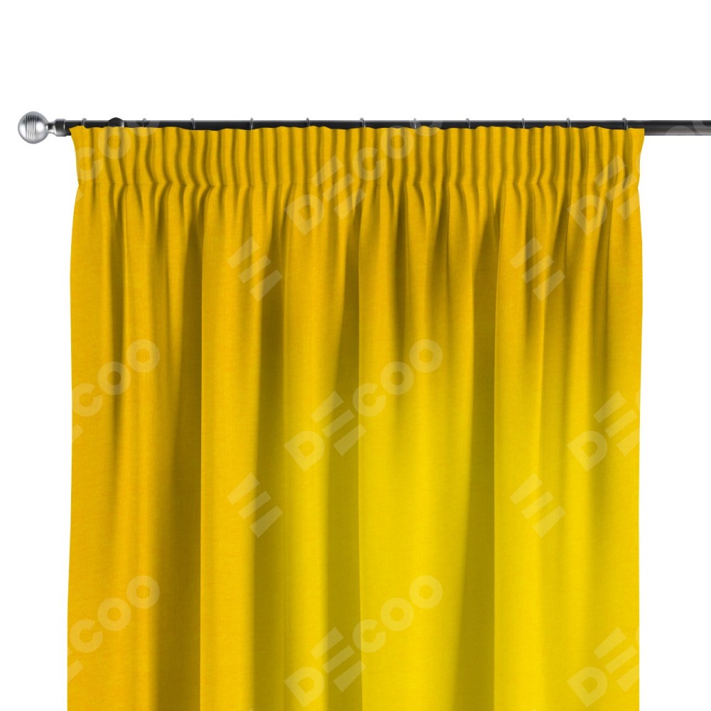 Комплект прямых штор, от производителя «Cortin», пошиты из ткани канвас желтый, артикул ткани v-344. С изнаночной стороны в верхней части штор пристрачивается шторная лента с декоративными складками «Карандаш». Для создания элегантных складок прямые шторы шьются по стандарту с коэффициентом 1:2 (на 100 см. ширины проёма 200 см. ширины ткани).