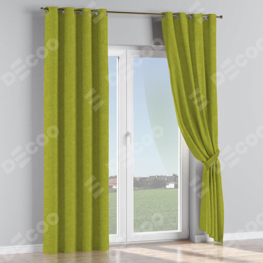 Комплект прямых штор, от производителя «Cortin», пошиты из ткани канвас зелёное яблоко, артикул ткани v-370. Данная модель пошита на люверсах, комплектуется на выбор круглым карнизом и подходит для монтажа на стену или потолок. Прямые шторы на люверсах шьются по стандарту с коэффициентом 1/2 (на 100 см. ширины проёма 200 см. ширины ткани), отличительным преимуществом данной модели является простой способ монтажа. Достаточно повесить ее на трубу и штора готова!