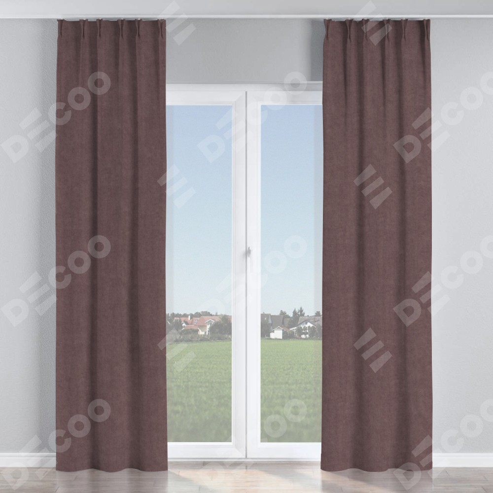Комплект прямых штор, от производителя «Cortin», пошиты из ткани канвас махагон, артикул ткани v-37. С изнаночной стороны в верхней части штор пристрачивается шторная лента с декоративными складками «Кустик». Для создания элегантных складок прямые шторы шьются по стандарту с коэффициентом 1:2 (на 100 см. ширины проёма 200 см. ширины ткани).