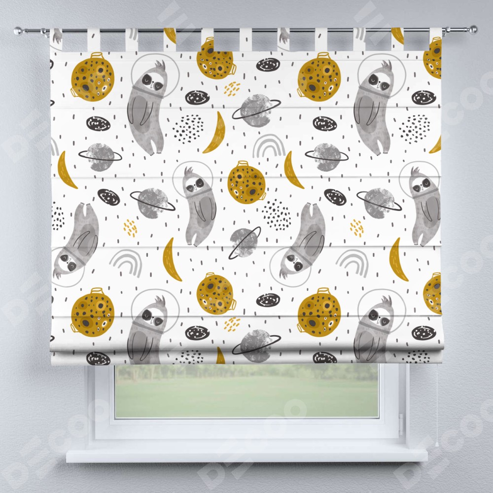Римская штора производителя «Cortin», используется для проёма, пошита из ткани блэкаут с нанесением сублимационной печати «Ленивец в шлеме». Данная модель пошита на петлях, комплектуется на выбор круглым карнизом и подходит для монтажа на стену. Римская штора на петлях имеет простую систему регулировки высоты, отличительным преимуществом данной модели является простой способ монтажа. Достаточно повесить ее на трубу и штора готова!
