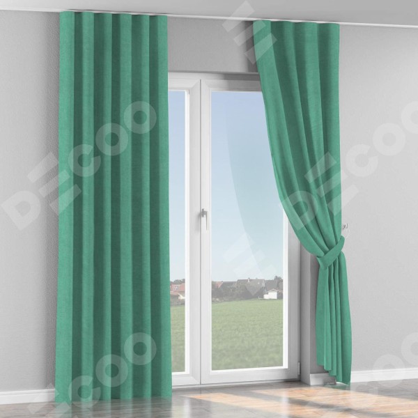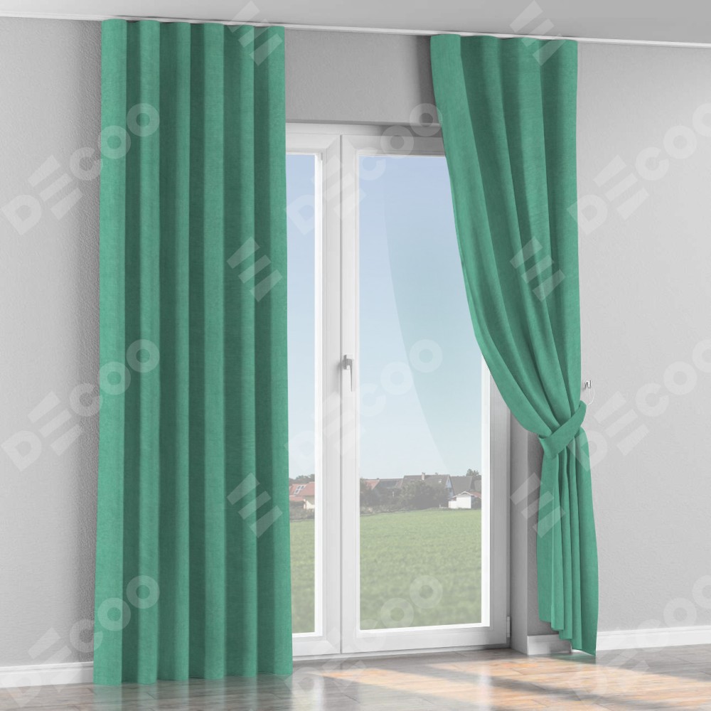 Комплект прямых штор, от производителя «Cortin», пошиты из ткани канвас мятный, артикул ткани v-248. С изнаночной стороны в верхней части штор пристрачивается шторная лента с декоративными складками «Волна». Для создания элегантных складок прямые шторы шьются по стандарту с коэффициентом 1:2 (на 100 см. ширины проёма 200 см. ширины ткани).