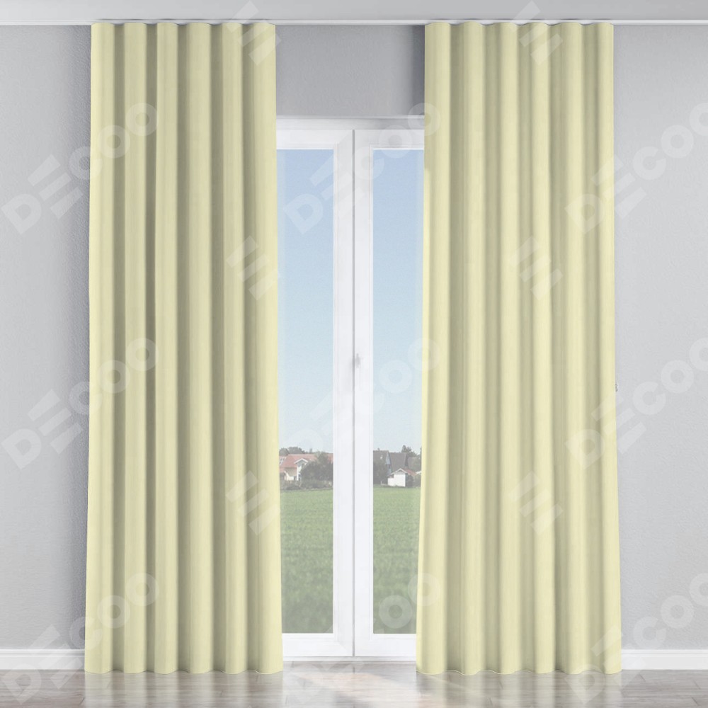 Комплект прямых штор, от производителя «Cortin», пошиты из ткани канвас светло-бежевый, артикул ткани v-250. С изнаночной стороны в верхней части штор пристрачивается шторная лента с декоративными складками «Волна». Для создания элегантных складок прямые шторы шьются по стандарту с коэффициентом 1:2 (на 100 см. ширины проёма 200 см. ширины ткани).
