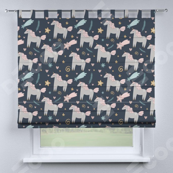 Римская штора производителя «Cortin», используется для проёма, пошита из ткани блэкаут с нанесением сублимационной печати «Милые единороги». Данная модель пошита на петлях, комплектуется на выбор круглым карнизом и подходит для монтажа на стену. Римская штора на петлях имеет простую систему регулировки высоты, отличительным преимуществом данной модели является простой способ монтажа. Достаточно повесить ее на трубу и штора готова!