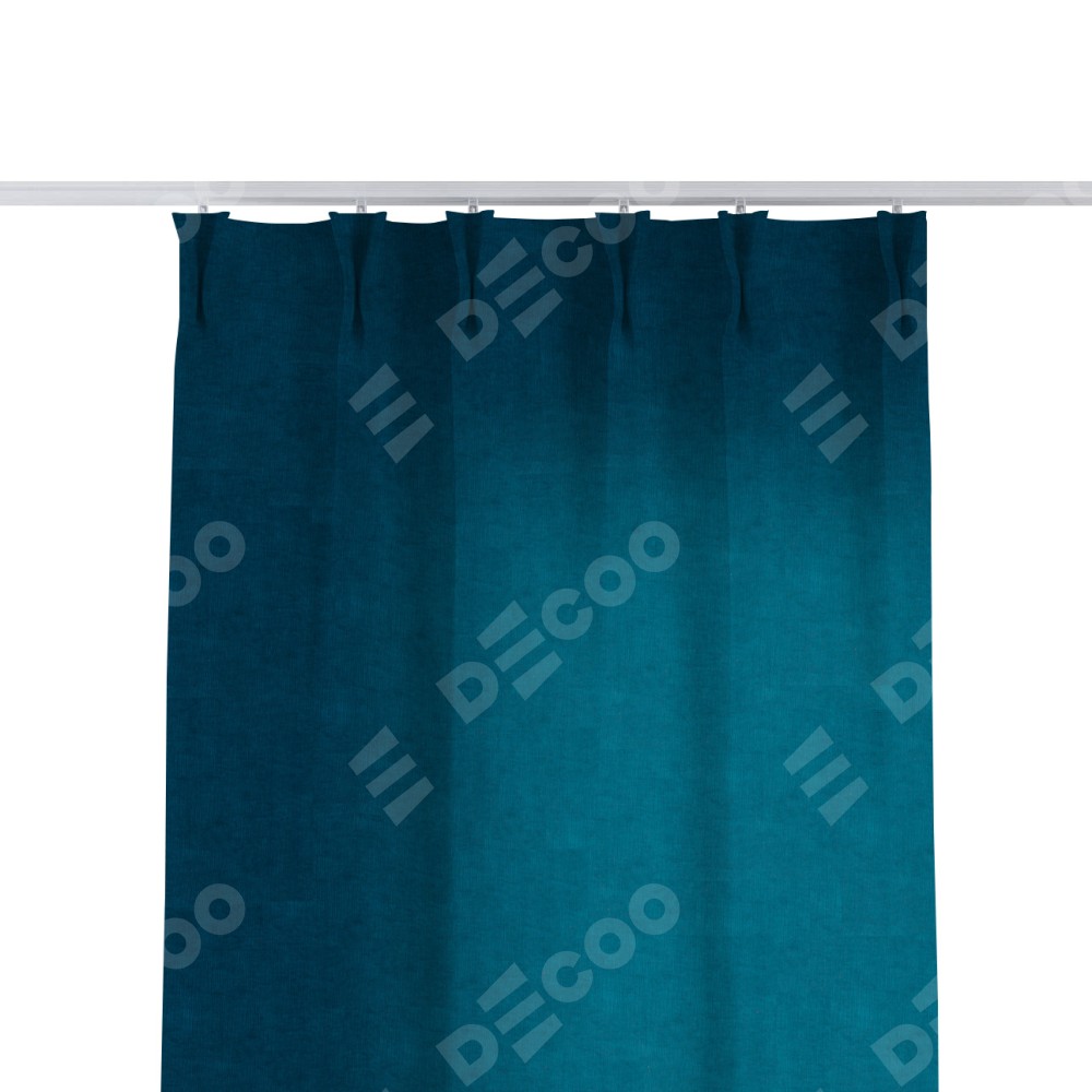 Комплект прямых штор, от производителя «Cortin», пошиты из ткани канвас синий, артикул ткани v-573. С изнаночной стороны в верхней части штор пристрачивается шторная лента с декоративными складками «Кустик». Для создания элегантных складок прямые шторы шьются по стандарту с коэффициентом 1:2 (на 100 см. ширины проёма 200 см. ширины ткани).