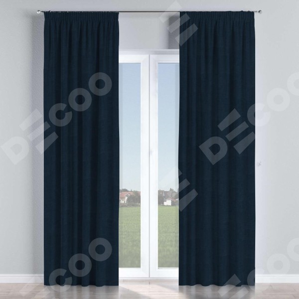 Комплект прямых штор, от производителя «Cortin», пошиты из ткани канвас тёмно-синий, артикул ткани v-206. С изнаночной стороны в верхней части штор пристрачивается шторная лента с декоративными складками «Карандаш». Для создания элегантных складок прямые шторы шьются по стандарту с коэффициентом 1:2 (на 100 см. ширины проёма 200 см. ширины ткани).