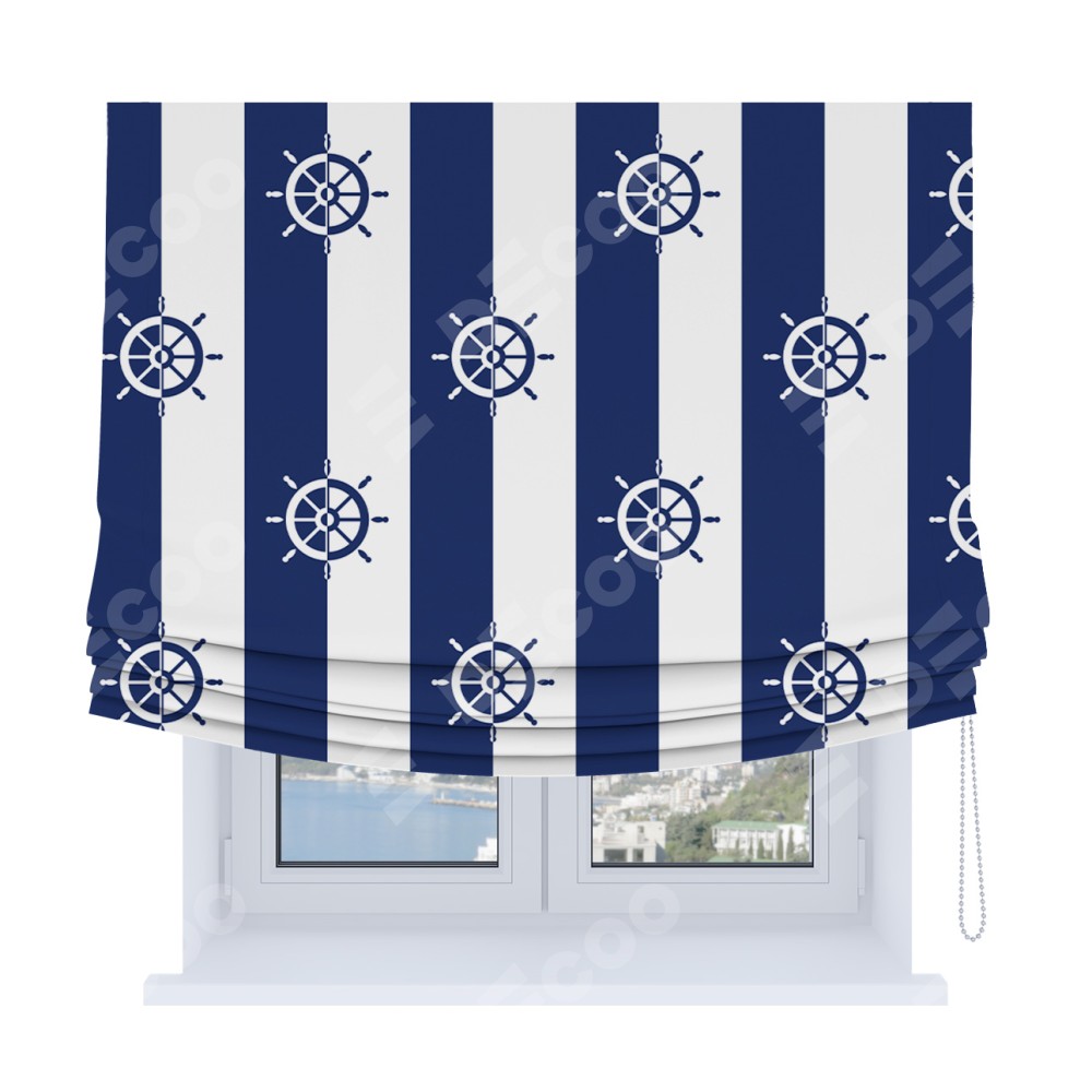 Римская штора Soft с мягкими складками, «Полоски и штурвалы»