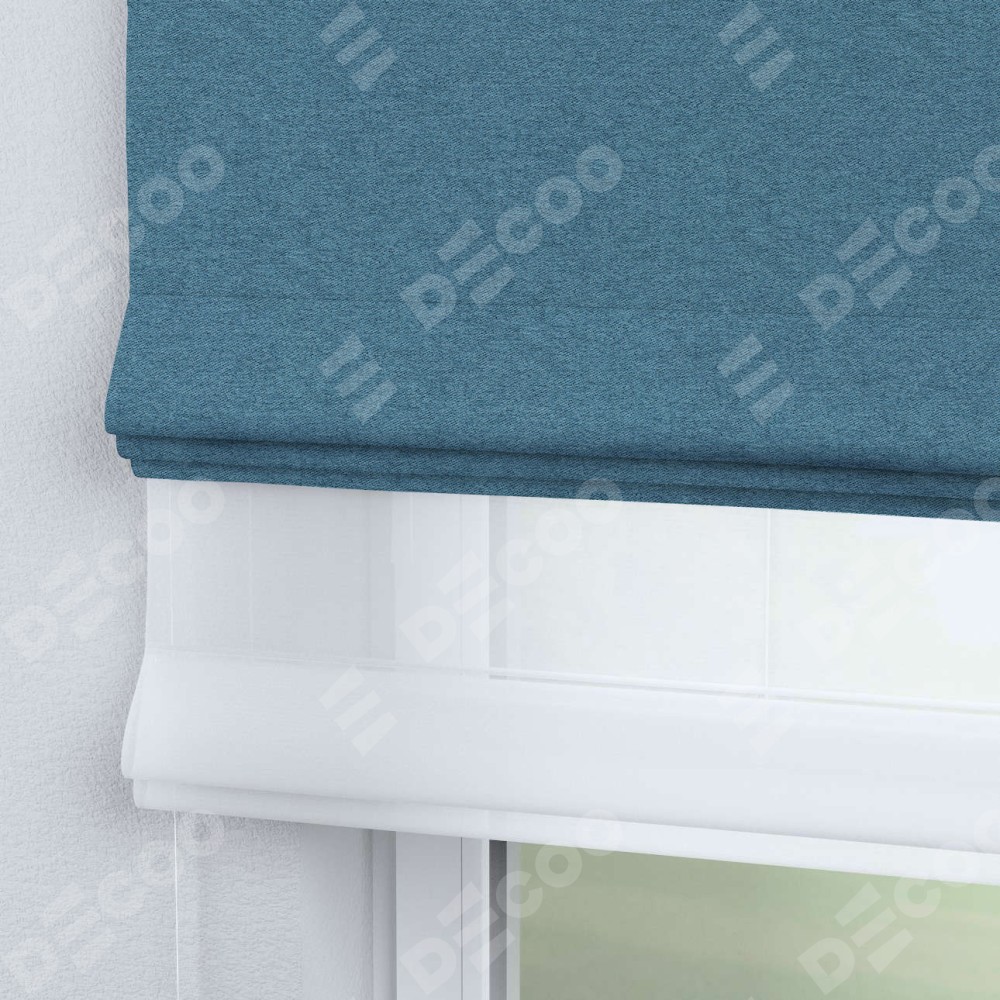 Римская штора день-ночь производителя «Cortin», используется для проёма, пошита из двух полотен, с лицевой стороны твид блэкаут светло-синий артикул 90935, вторая ткань тюль (по стандарту комплектуется тюль белого цвета артикул V-01). Имеет универсальный механизм и подходит для монтажа: на потолок, на стену и в нишу.