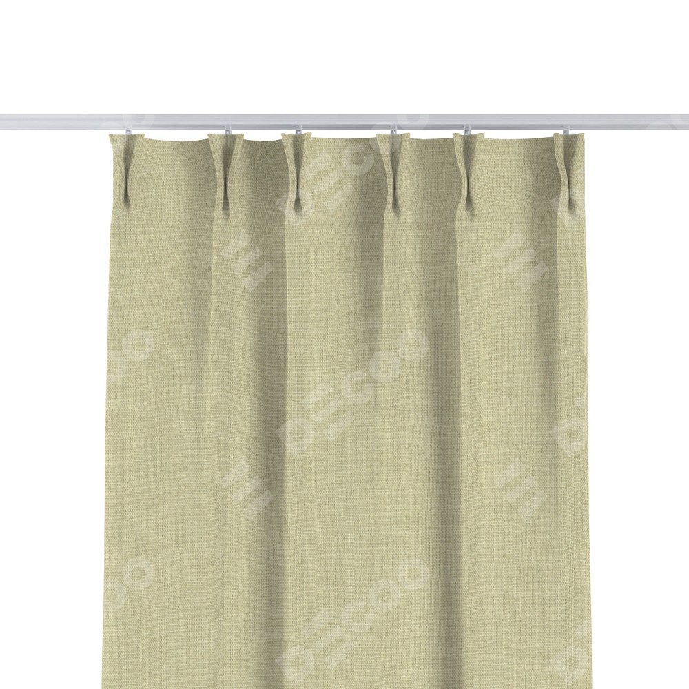 Комплект прямых штор, от производителя «Cortin», пошиты из ткани лён димаут шампань, артикул ткани 90994. С изнаночной стороны в верхней части штор пристрачивается шторная лента с декоративными складками «Кустик». Для создания элегантных складок прямые шторы шьются по стандарту с коэффициентом 1:2 (на 100 см. ширины проёма 200 см. ширины ткани).