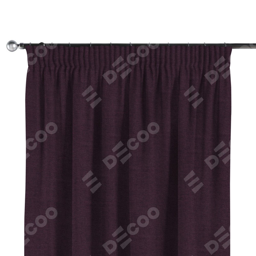 Комплект прямых штор, от производителя «Cortin», пошиты из ткани лён димаут фиолетовый, артикул ткани 16267. С изнаночной стороны в верхней части штор пристрачивается шторная лента с декоративными складками «Карандаш». Для создания элегантных складок прямые шторы шьются по стандарту с коэффициентом 1:2 (на 100 см. ширины проёма 200 см. ширины ткани).