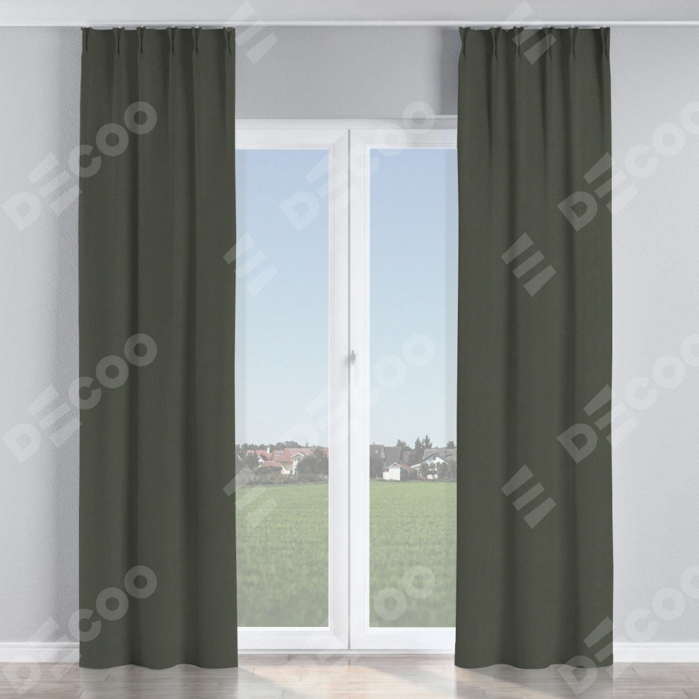 Комплект прямых штор, от производителя «Cortin», пошиты из ткани блэкаут однотонный дымчато-серый, артикул ткани 91571−1. С изнаночной стороны в верхней части штор пристрачивается шторная лента с декоративными складками «Кустик». Для создания элегантных складок прямые шторы шьются по стандарту с коэффициентом 1:2 (на 100 см. ширины проёма 200 см. ширины ткани).