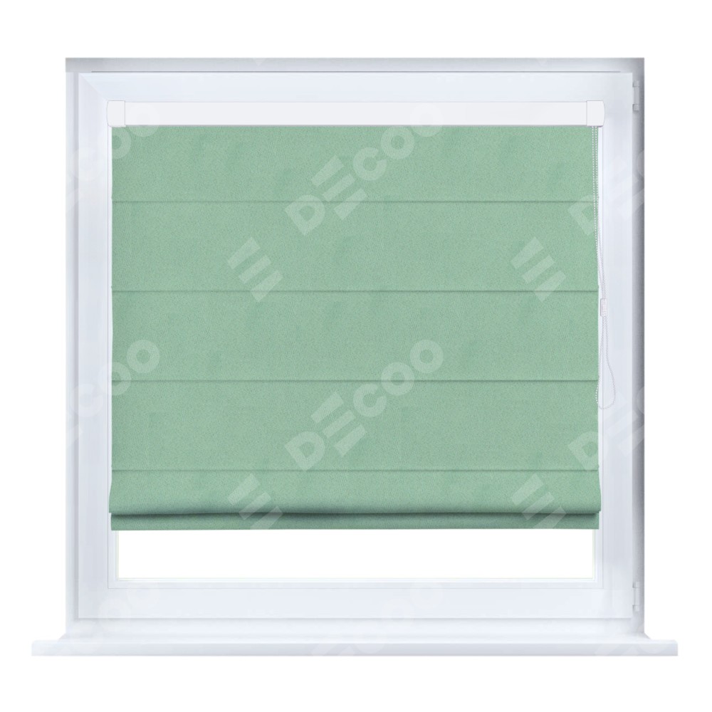 Римская штора производителя «Cortin», устанавливается на створку окна, пошита из ткани блэкаут однотонный ментоловый, артикул 91572−1. Штора шьётся по индивидуальным размерам, для данного типа римской шторы возможная ширина от 35 до 150 см., высота до 250 см.