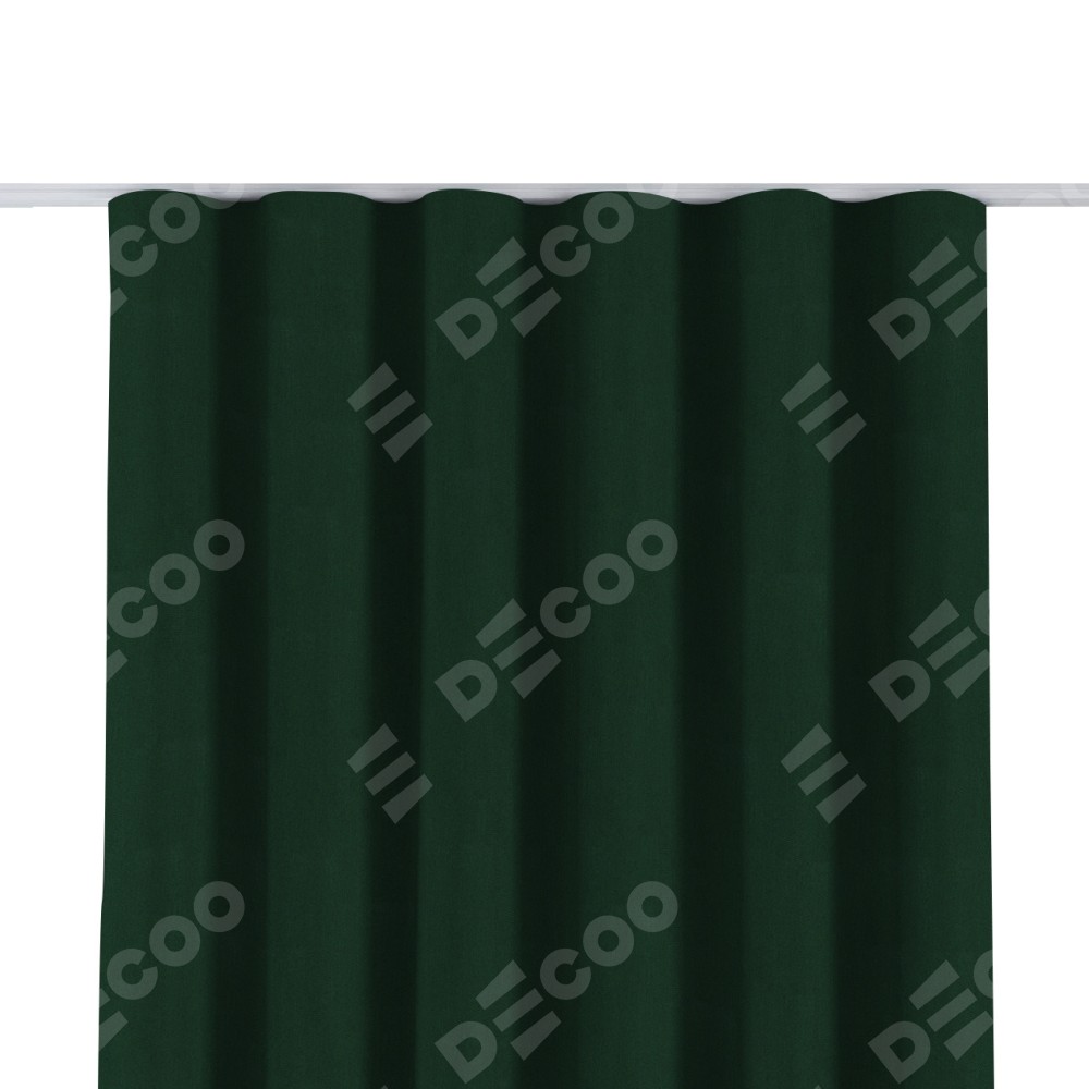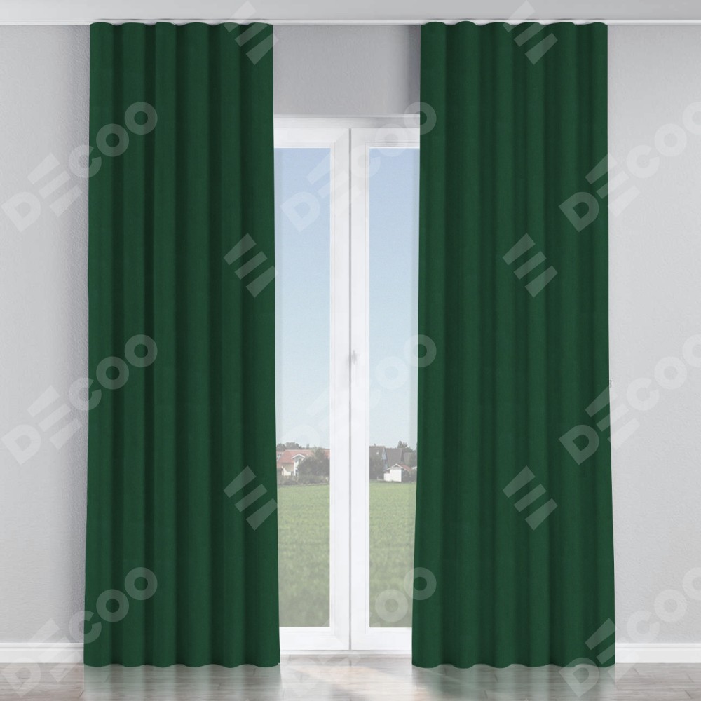 Комплект прямых штор, от производителя «Cortin», пошиты из ткани блэкаут однотонный зелёный, артикул ткани 91572−2. С изнаночной стороны в верхней части штор пристрачивается шторная лента с декоративными складками «Волна». Для создания элегантных складок прямые шторы шьются по стандарту с коэффициентом 1:2 (на 100 см. ширины проёма 200 см. ширины ткани).