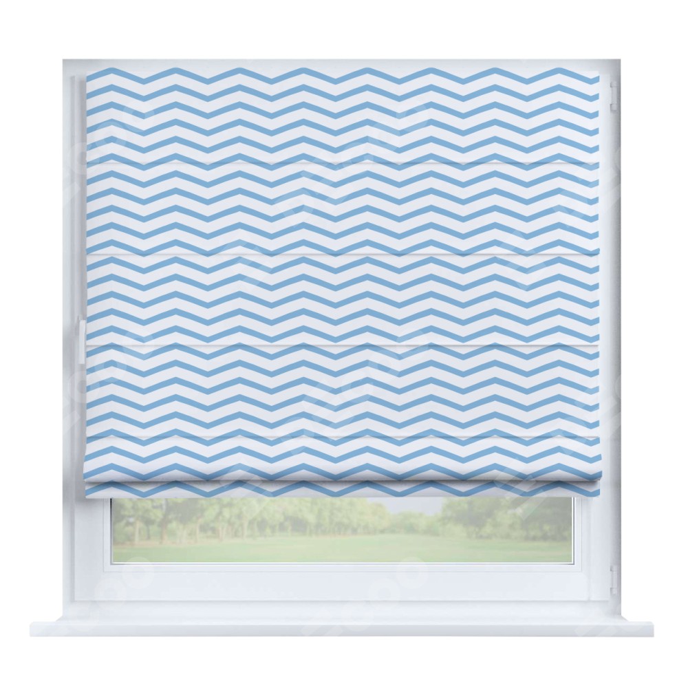 Римская штора производителя «Cortin», устанавливается на створку окна, пошита из ткани блэкаут с нанесением сублимационной печати «Зигзаг мелкий». Штора шьётся по индивидуальным размерам, для данного типа римской шторы возможная ширина от 35 до 150 см., высота до 250 см.