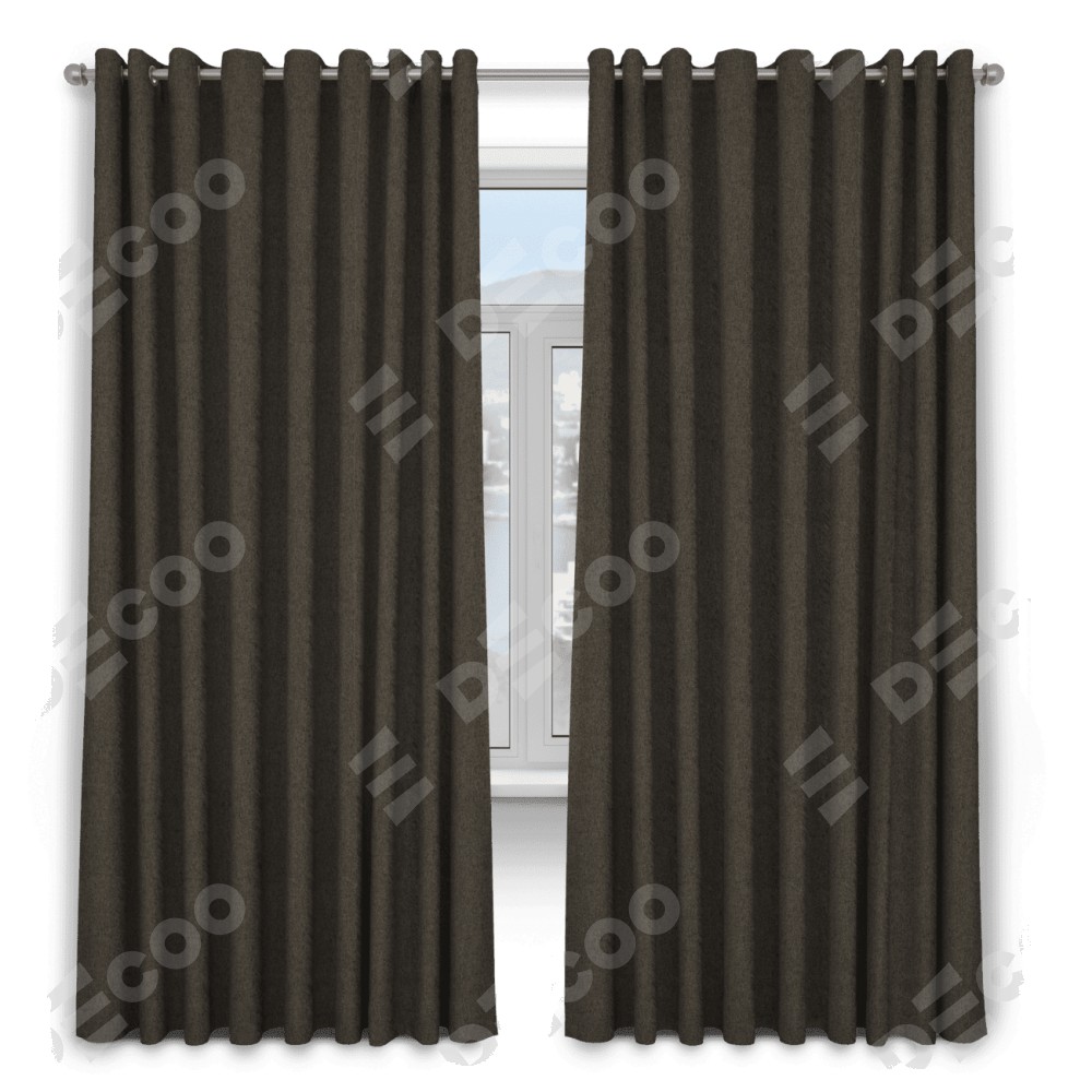 Комплект прямых штор, от производителя «Cortin», пошиты из ткани твид блэкаут тёмно-коричневый, артикул ткани 21584. Данная модель пошита на люверсах, комплектуется на выбор круглым карнизом и подходит для монтажа на стену. Прямые шторы на люверсах шьются по стандарту с коэффициентом 1/2 (на 100 см. ширины проёма 200 см. ширины ткани), отличительным преимуществом данной модели является простой способ монтажа. Достаточно повесить ее на трубу и штора готова!