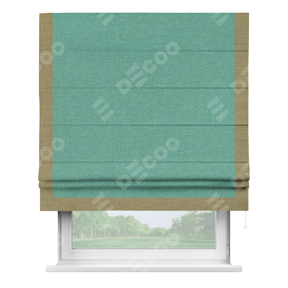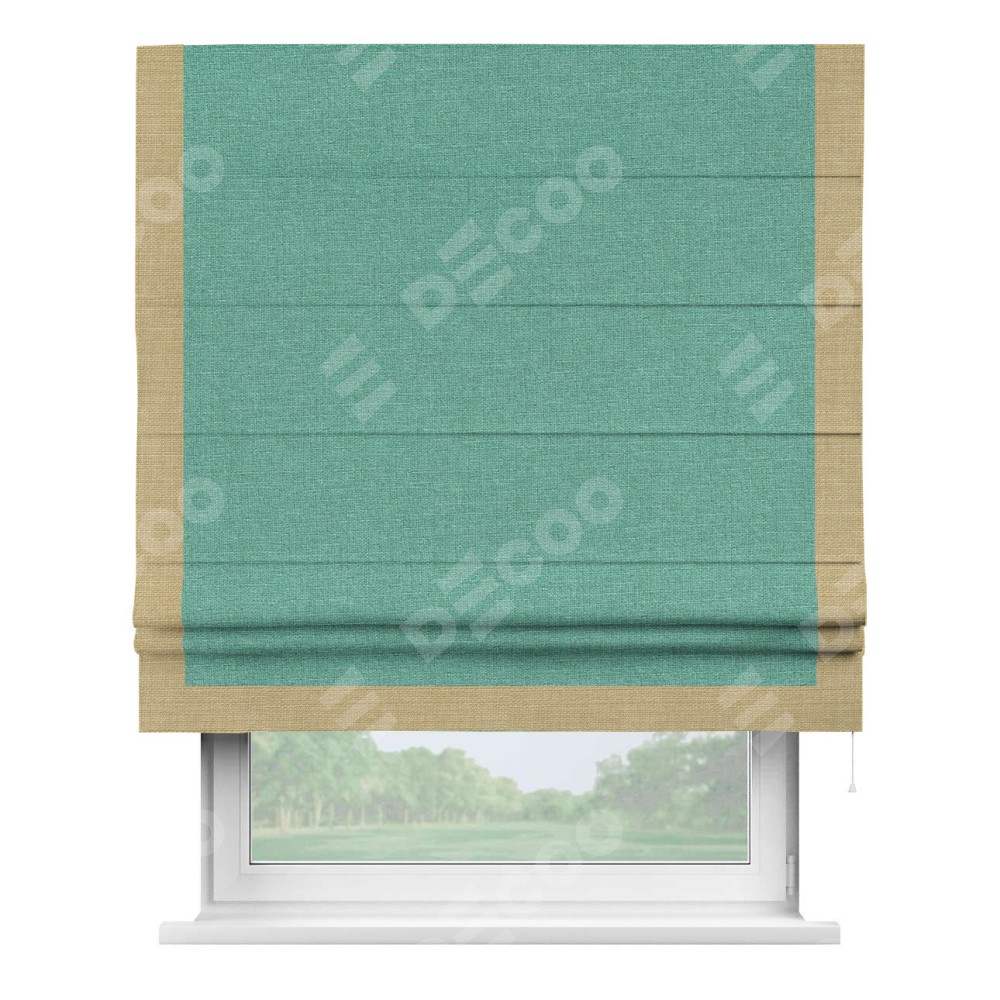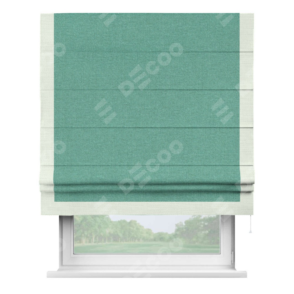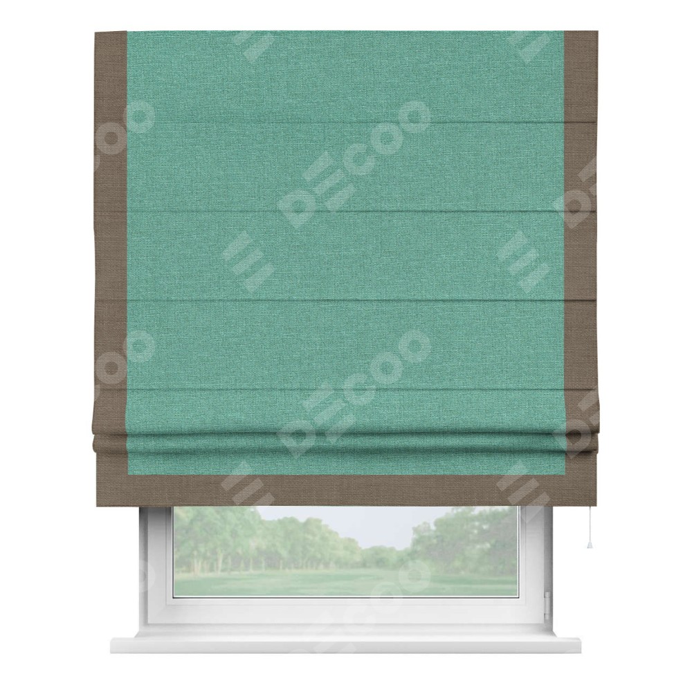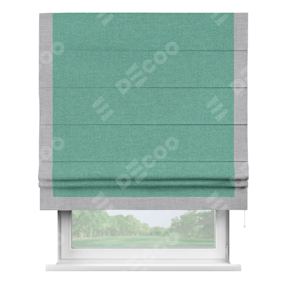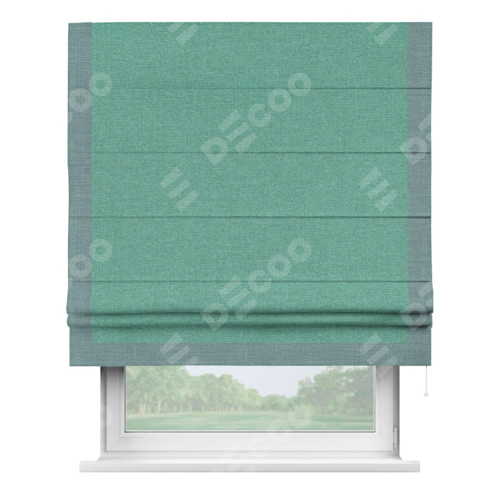 Римская штора «Кортин» с кантом Виктория, для проема, лён светло-бирюзовый