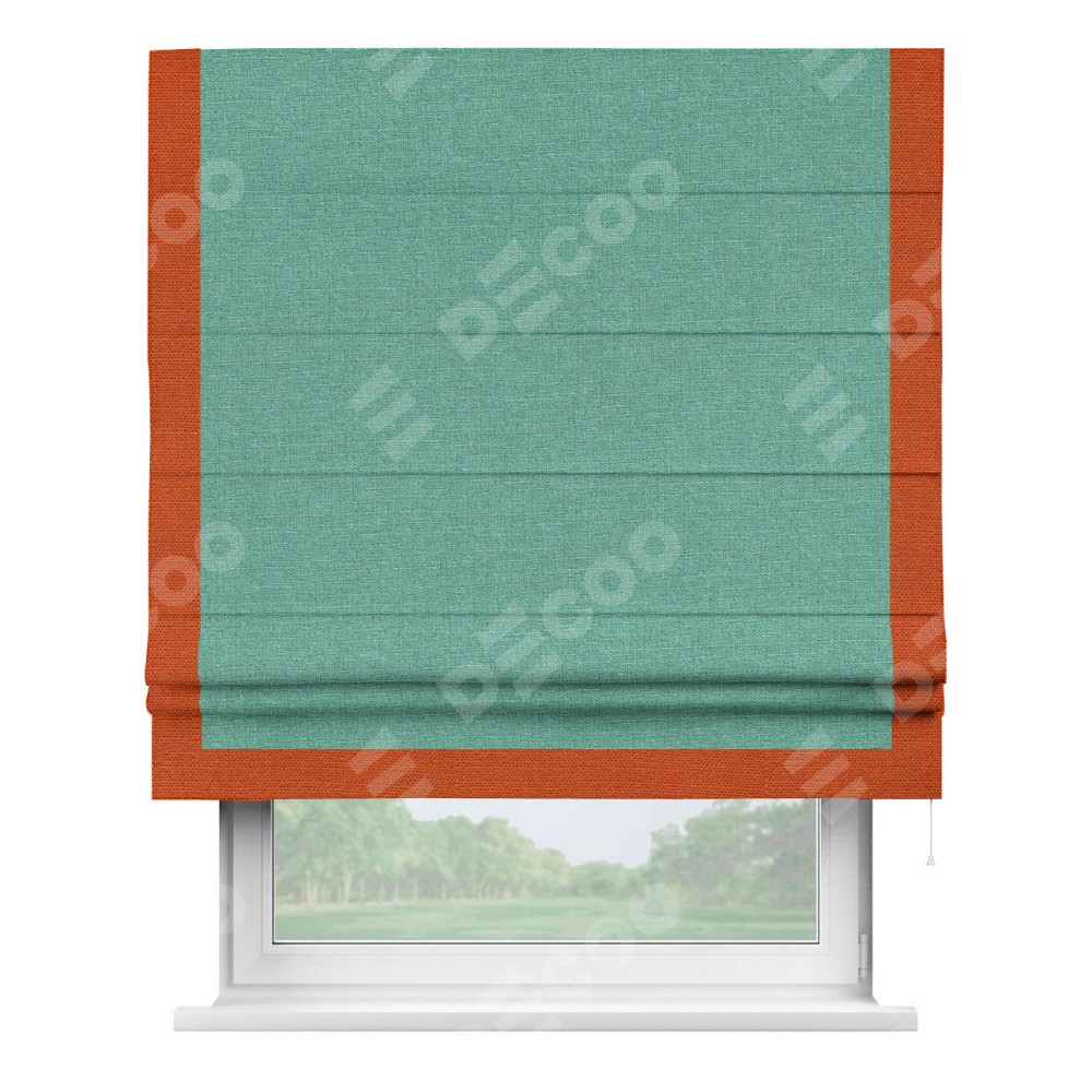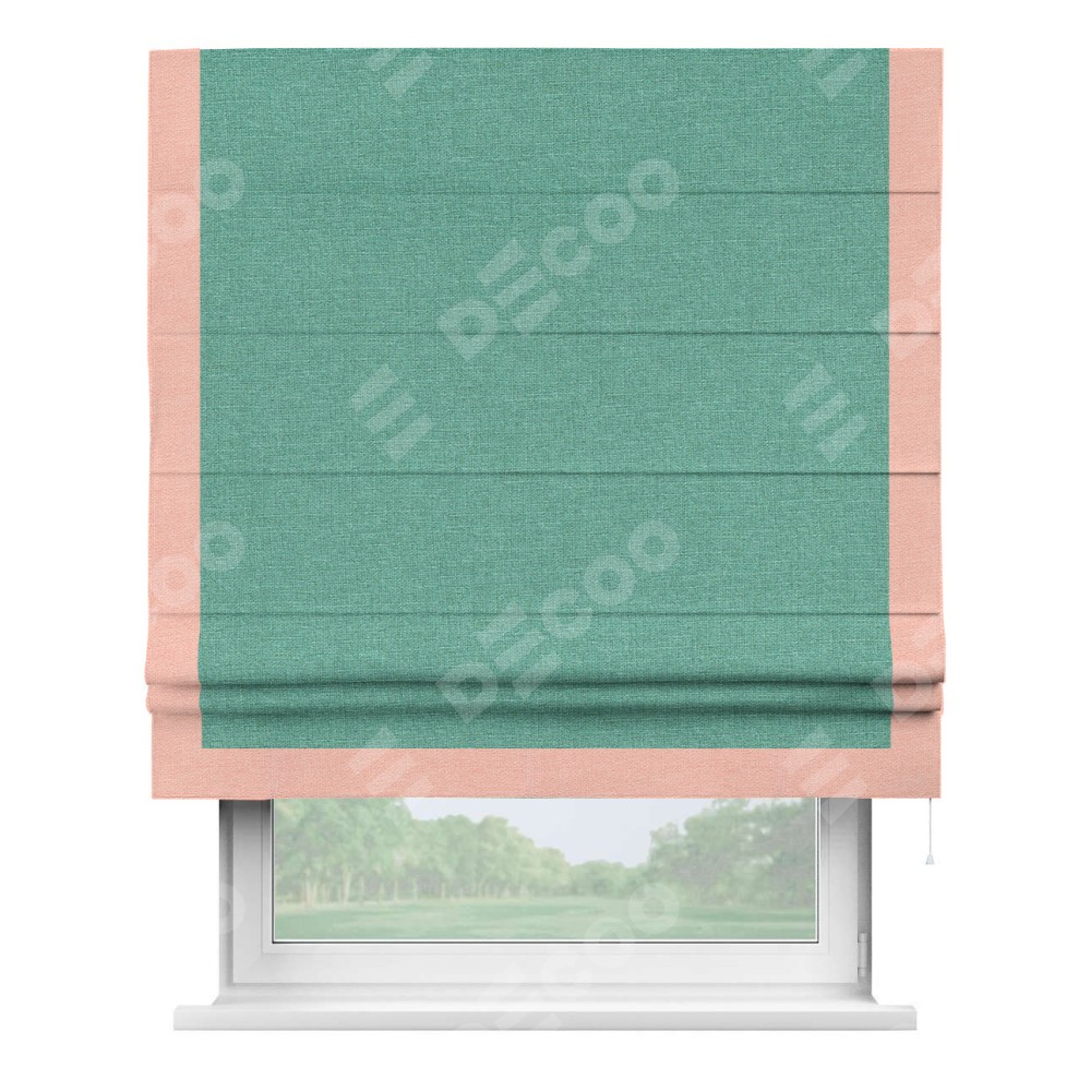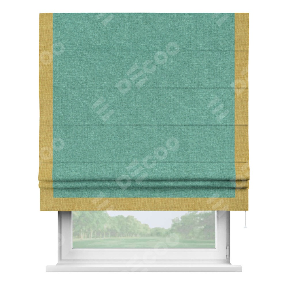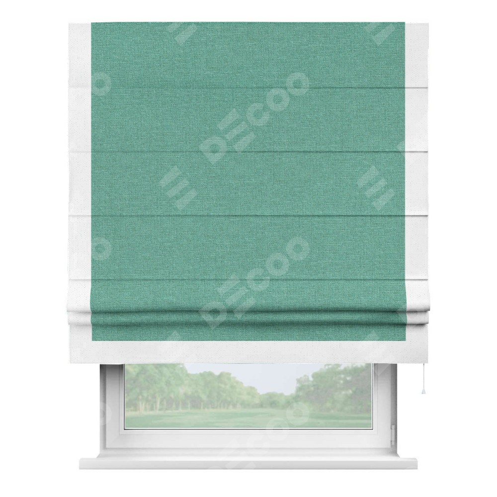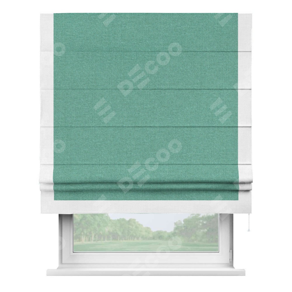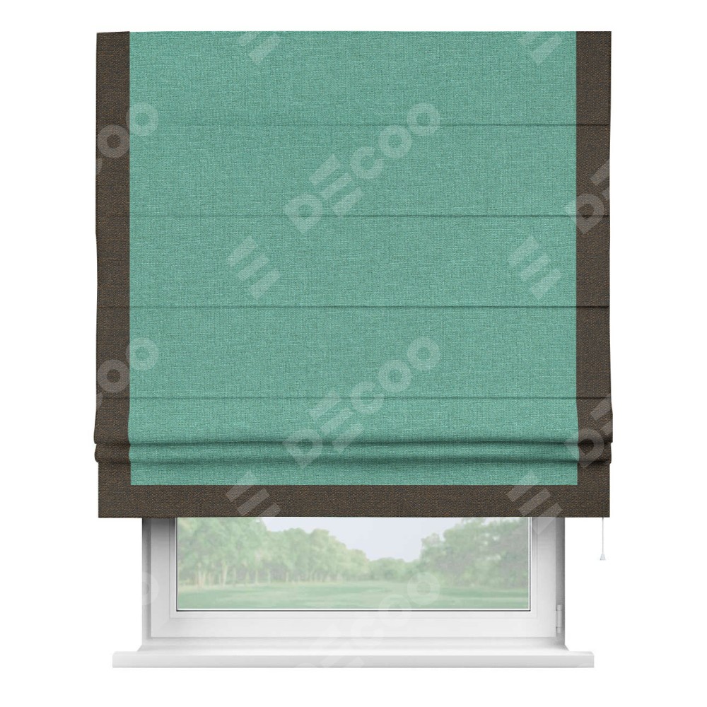 Римская штора «Кортин» с кантом Виктория, для проема, лён светло-бирюзовый