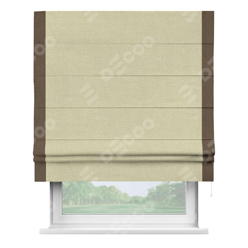 Римская штора «Кортин» с кантом Стрим Дуо, для проема, ткань лён димаут, шампань