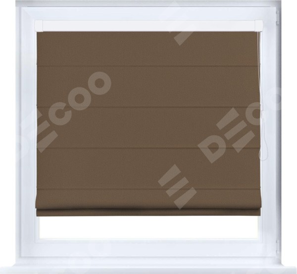 Римская штора производителя «Cortin», устанавливается на створку окна, пошита из ткани блэкаут однотонный коричневый, артикул 91334. Штора шьётся по индивидуальным размерам, для данного типа римской шторы возможная ширина от 35 до 150 см., высота до 250 см.