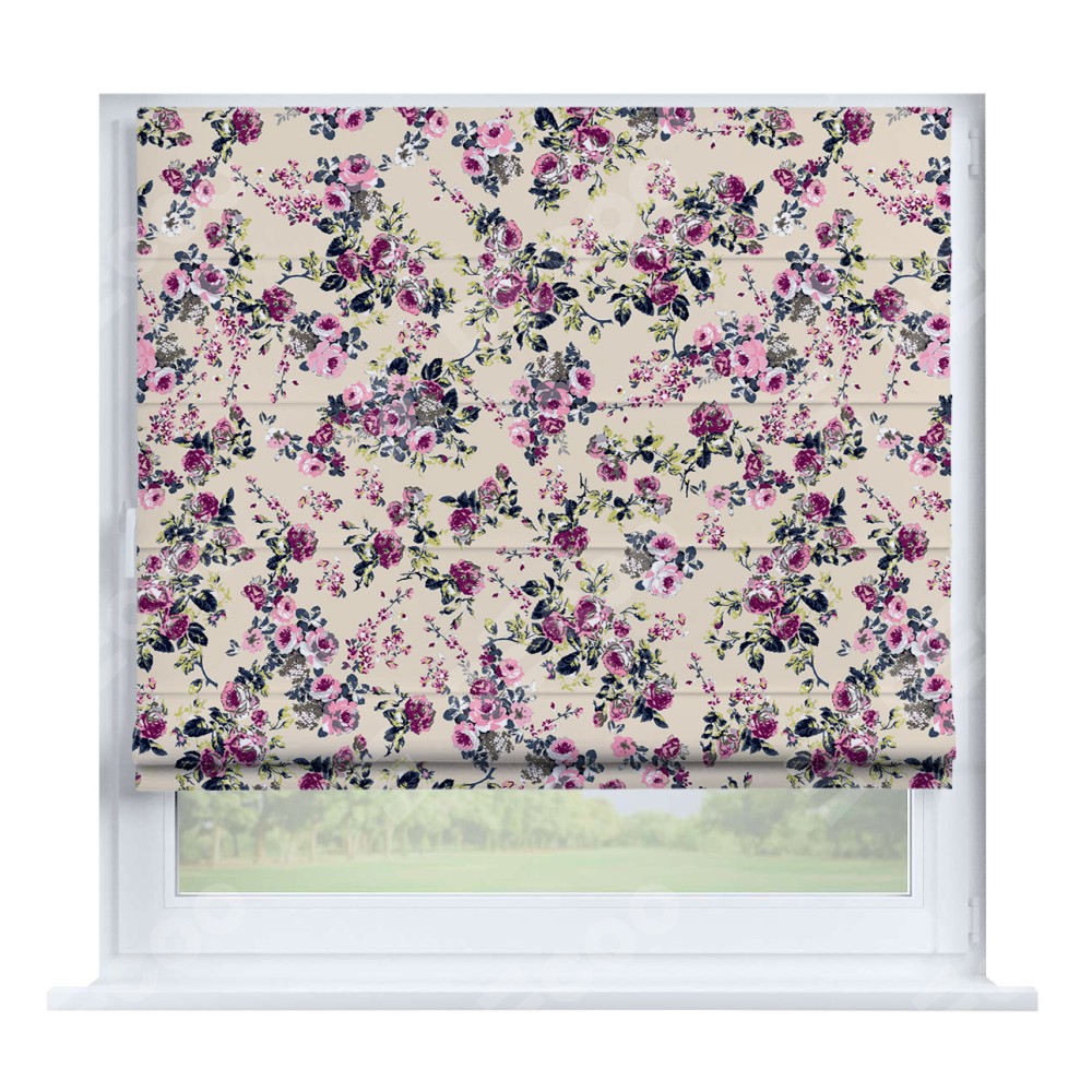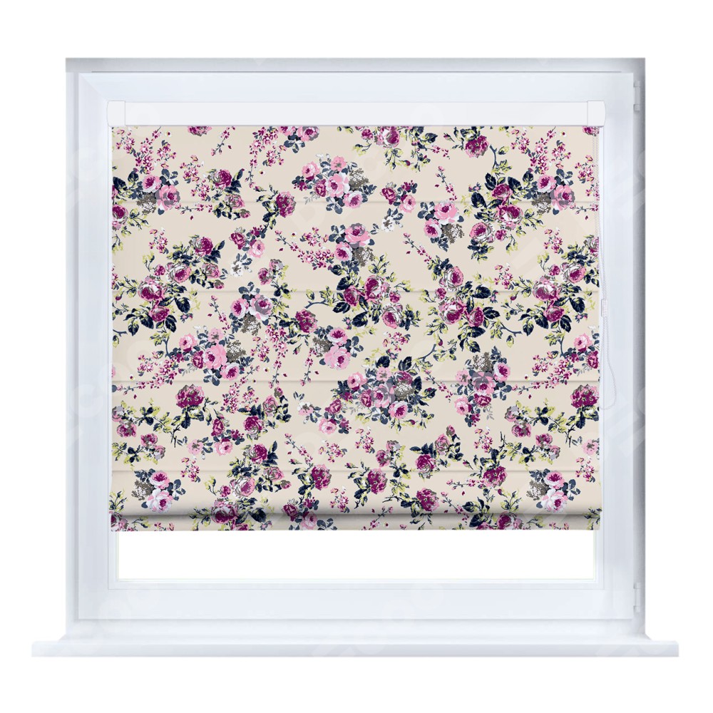 Римская штора производителя «Cortin», устанавливается на створку окна, пошита из ткани блэкаут с нанесением сублимационной печати «Россыпь розовых цветов». Штора шьётся по индивидуальным размерам, для данного типа римской шторы возможная ширина от 35 до 150 см., высота до 250 см.