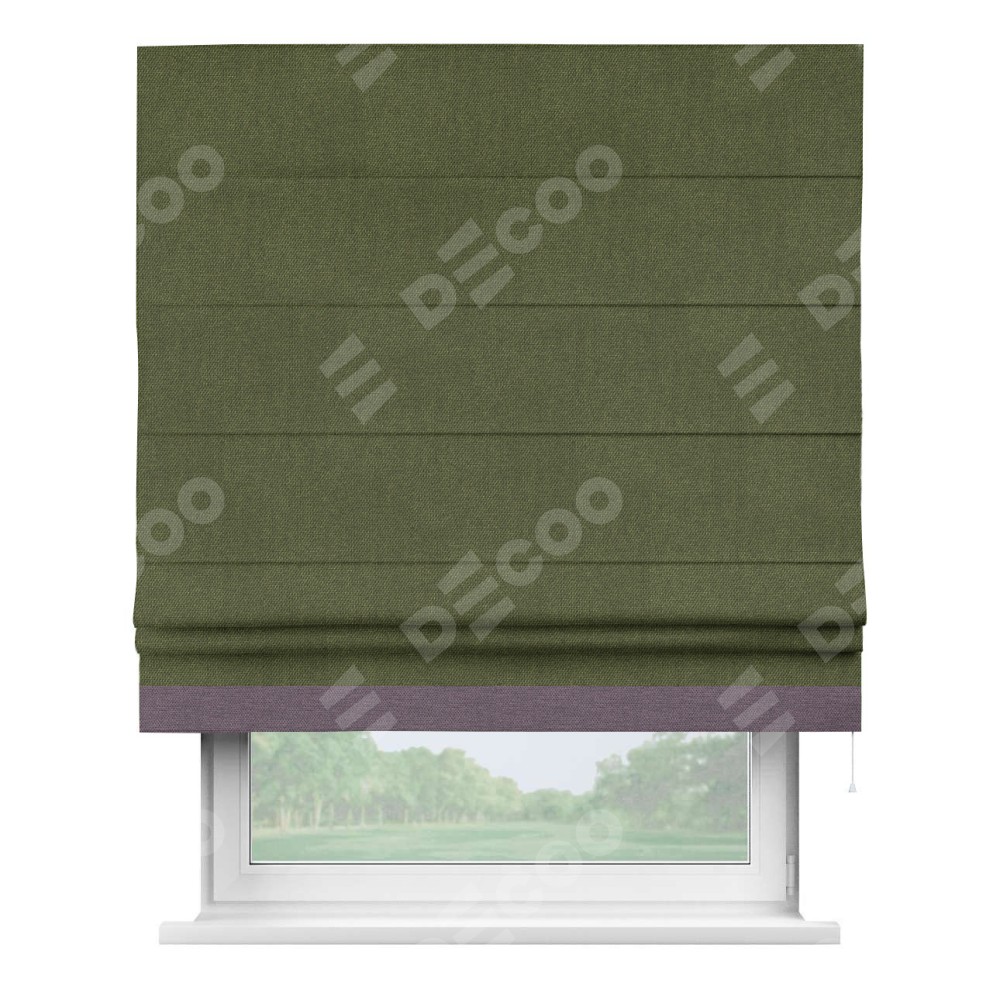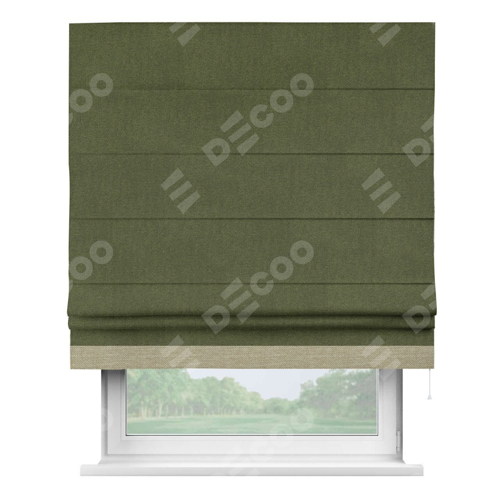 Римская штора «Кортин» для проема, лён димаут салатовый с кантом Джестер