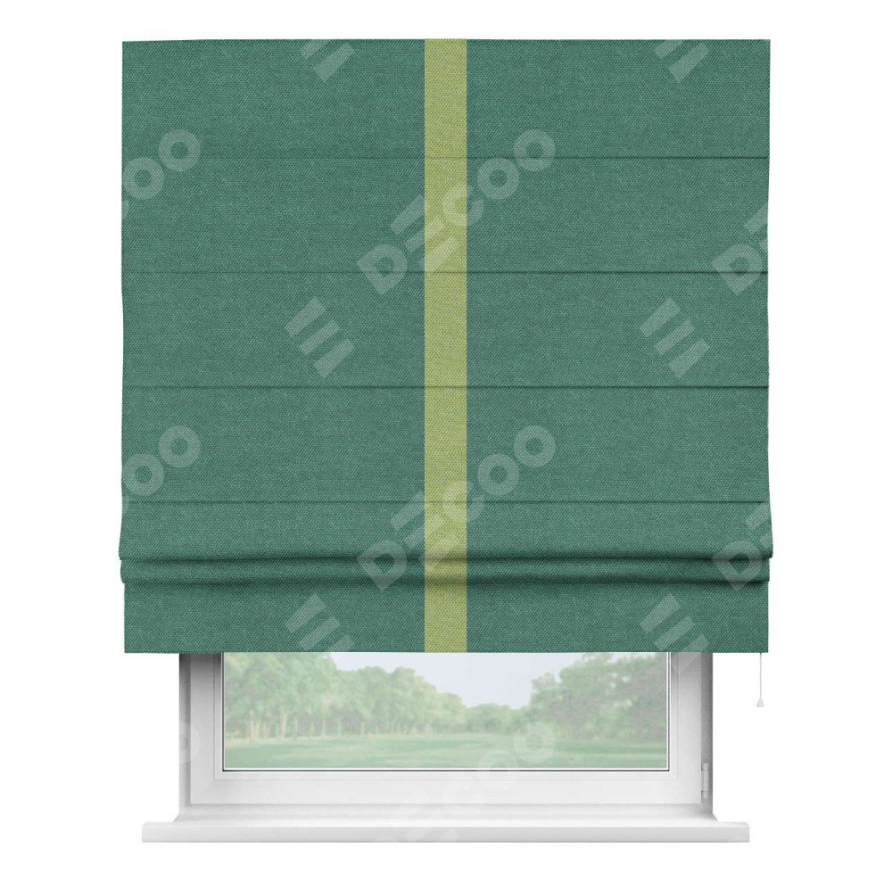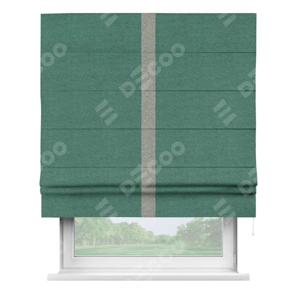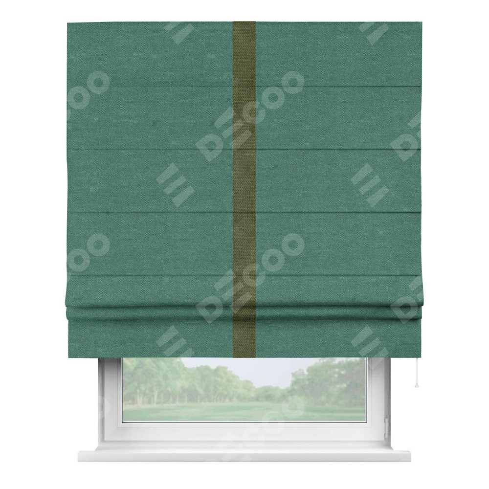 Римская штора «Кортин» для проема, лён димаут светло-бирюзовый с кантом Хайвэй
