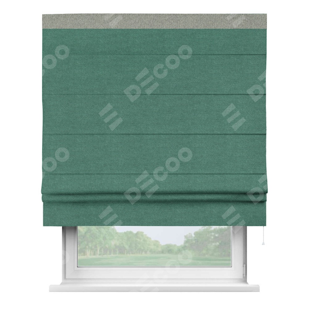 Римская штора «Кортин» для проема, лён димаут светло-бирюзовый с кантом Кинг