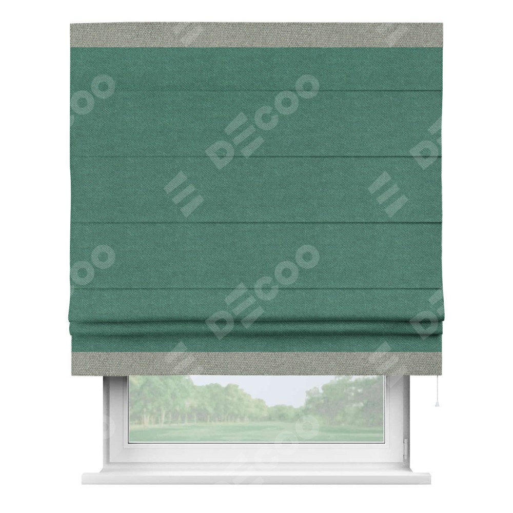 Римская штора «Кортин» для проема, лён димаут светло-бирюзовый с кантом Горизонт