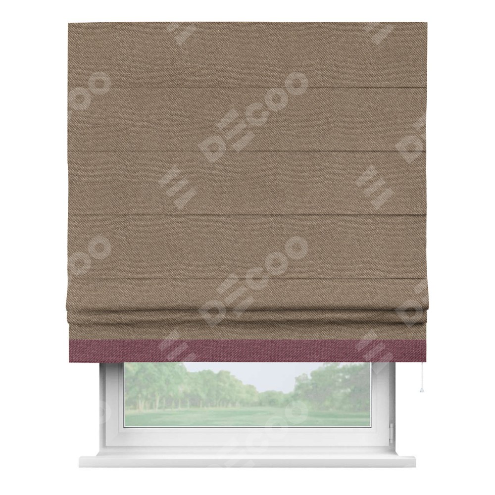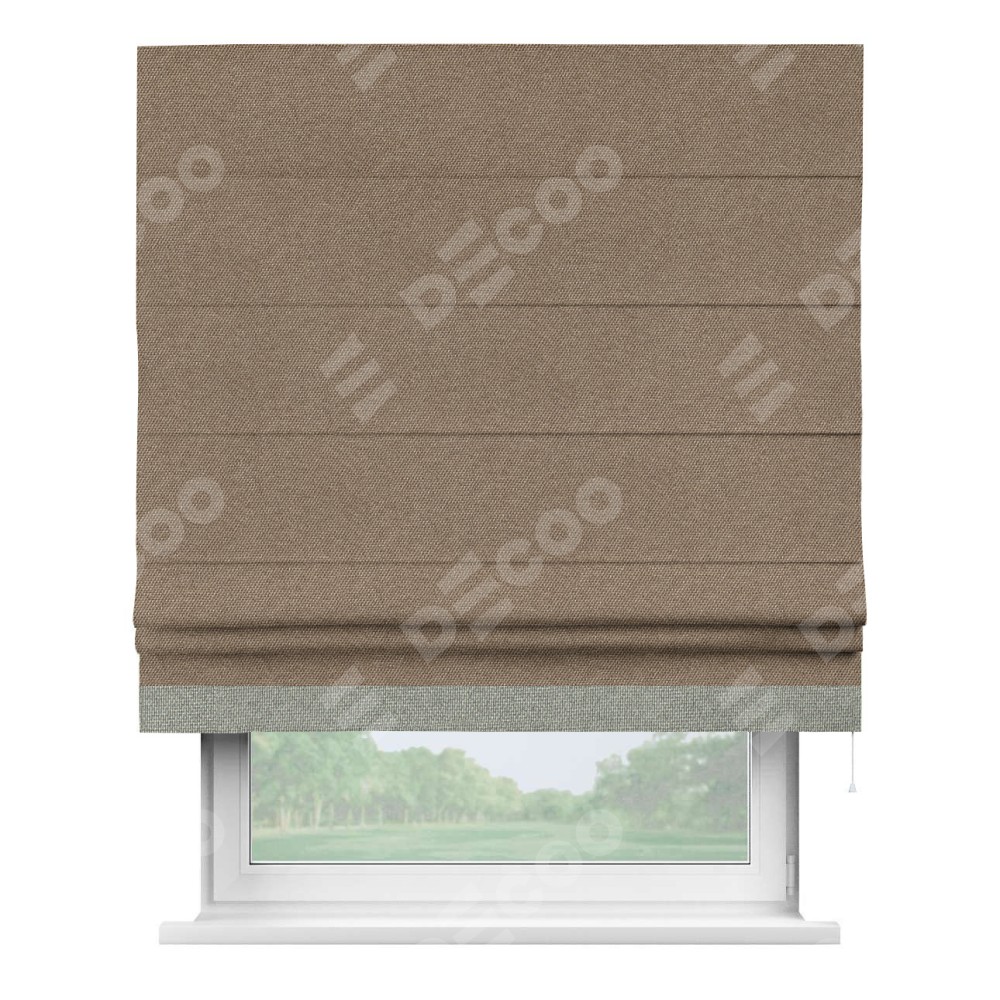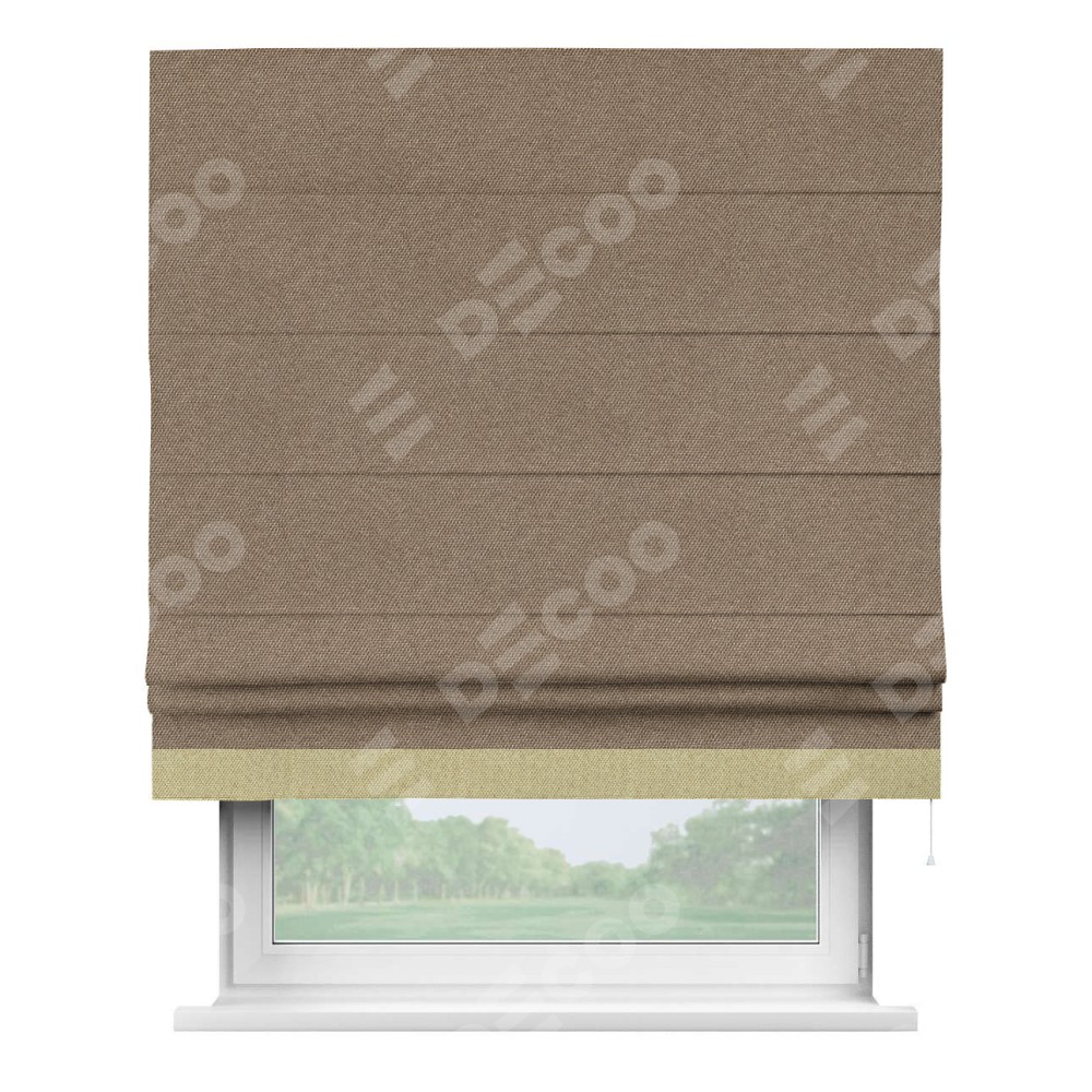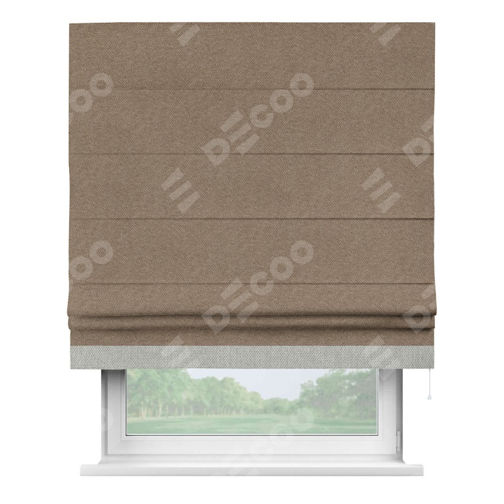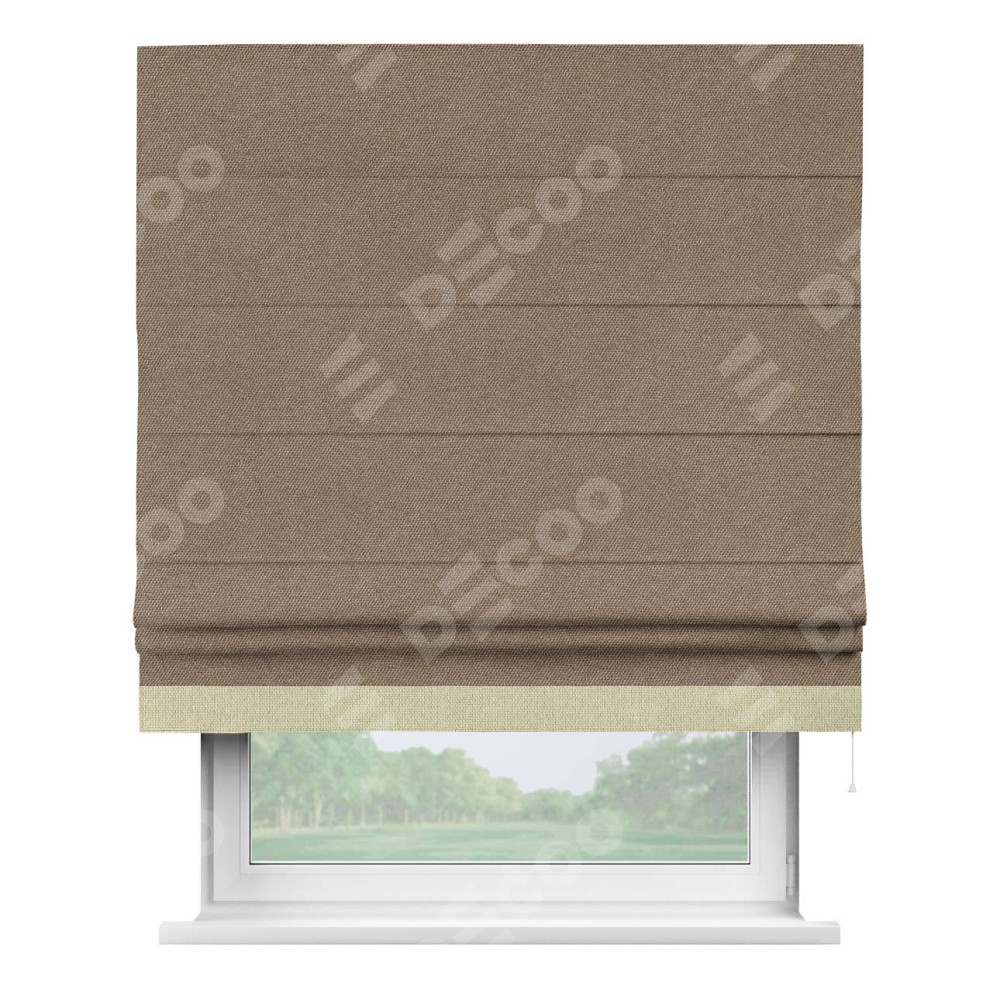 Римская штора «Кортин» для проема, лён димаут коричневый с кантом Джестер