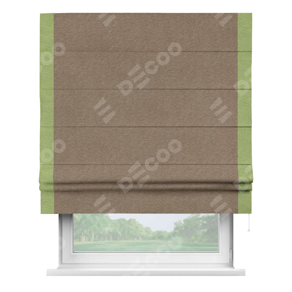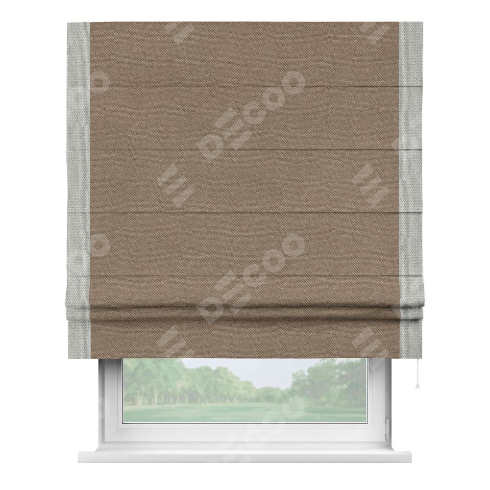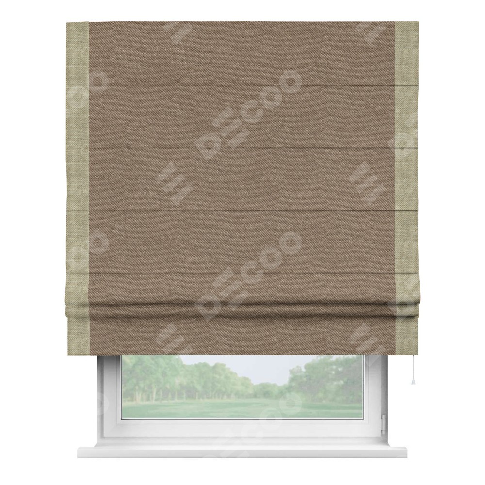Римская штора «Кортин» для проема, лён димаут коричневый с кантом Стрим Дуо