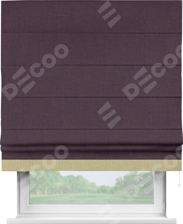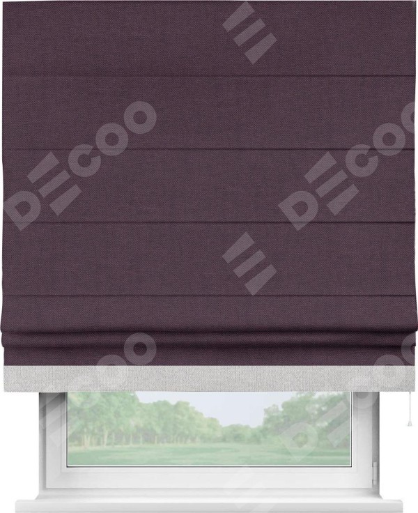 Римская штора «Кортин» для проема, лён димаут фиолетовый с кантом Джестер