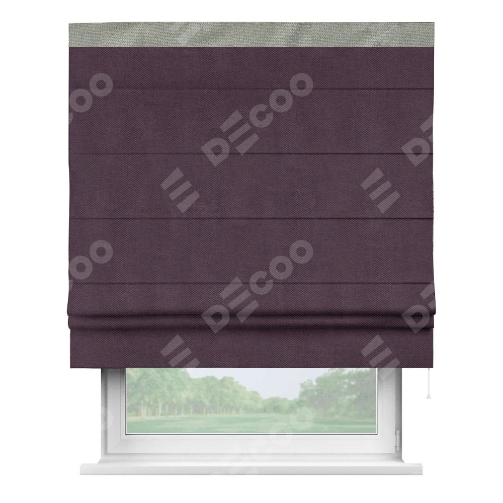 Римская штора «Кортин» для проема, лён димаут фиолетовый с кантом Кинг