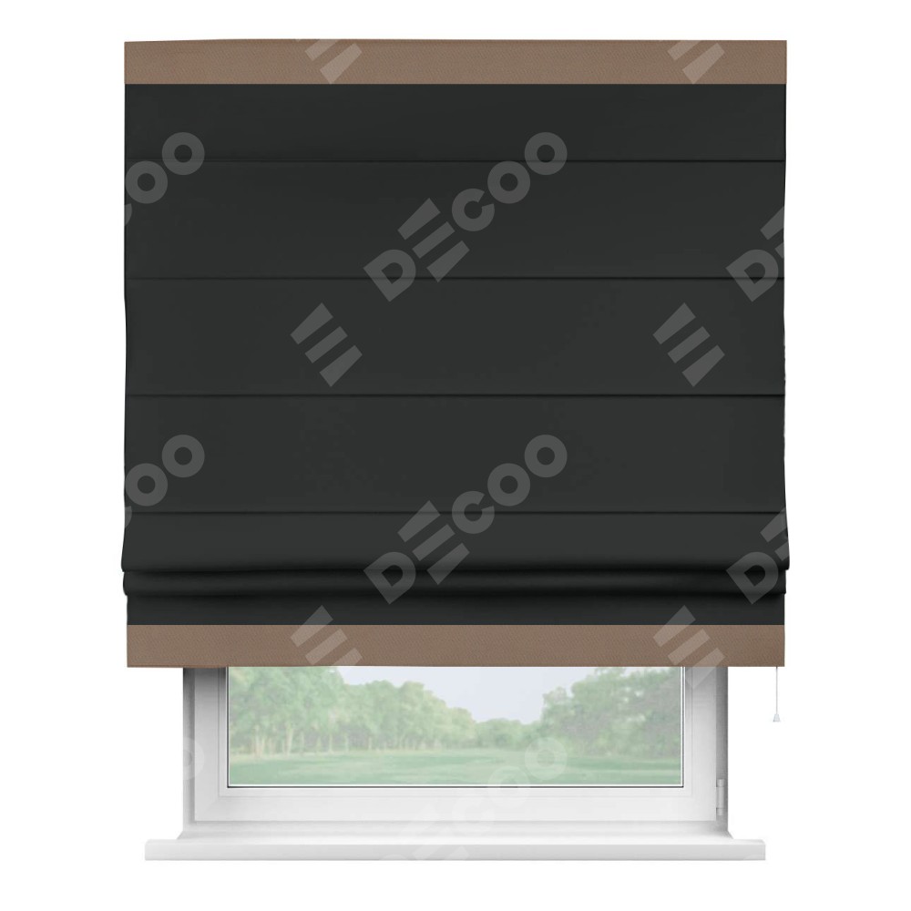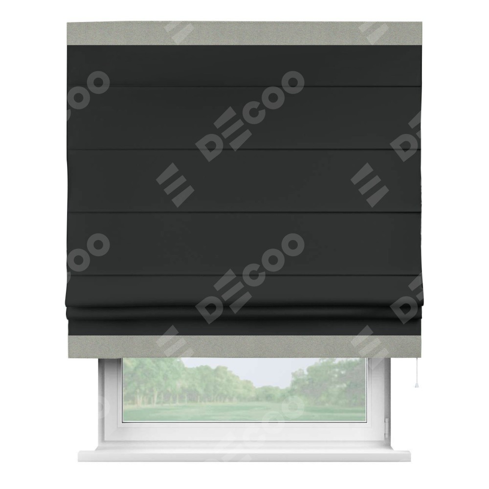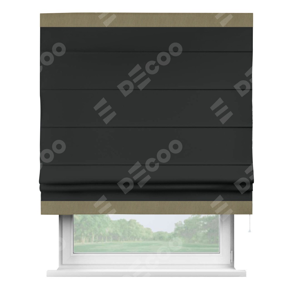 Римская штора «Кортин» для проема, блэкаут однотонный черный с кантом Горизонт