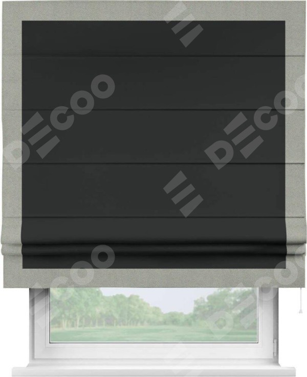 Римская штора «Кортин» для проема, блэкаут однотонный черный с кантом Чесс