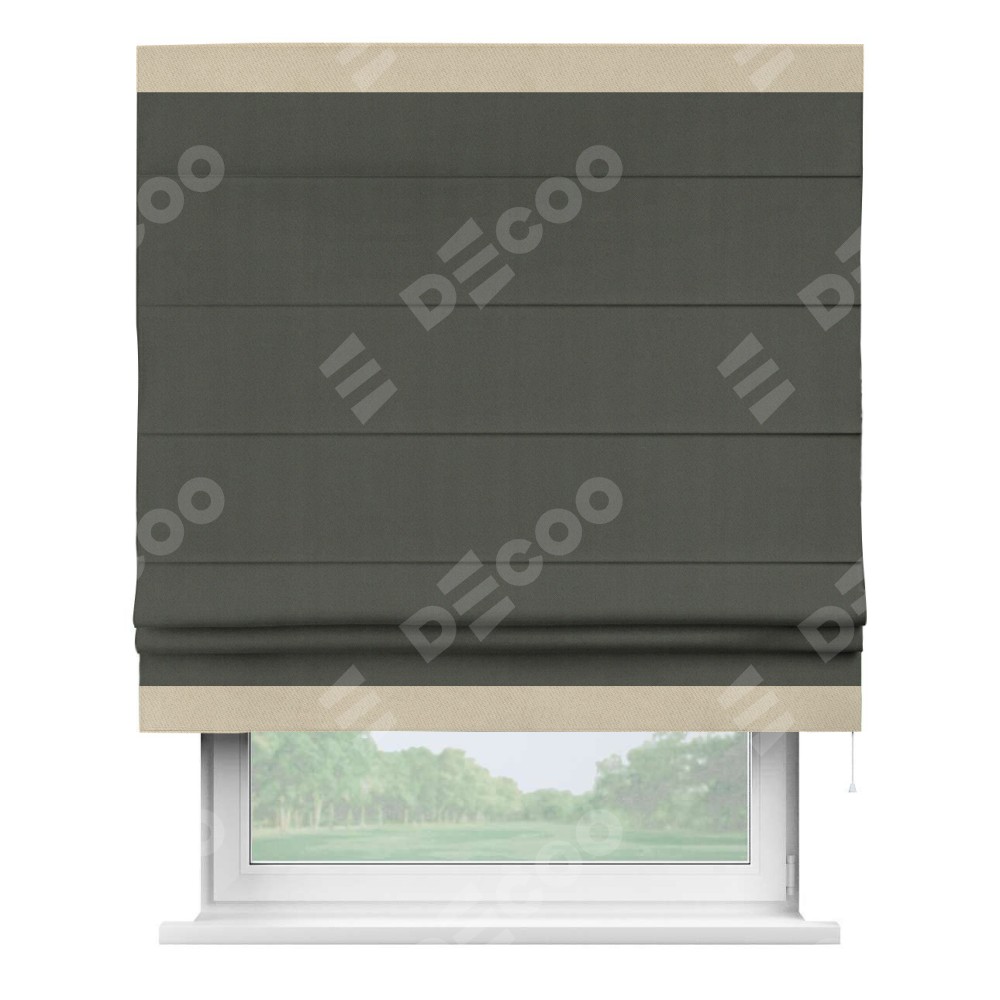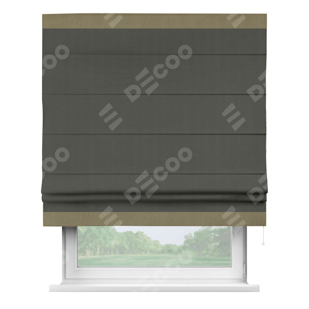 Римская штора «Кортин» для проема, блэкаут однотонный дымчато-серый с кантом Горизонт