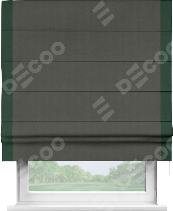 Римская штора «Кортин» для проема, блэкаут однотонный дымчато-серый с кантом Стрим Дуо