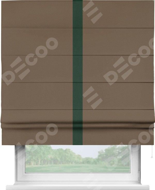 Римская штора «Кортин» для проема, блэкаут однотонный коричневый с кантом Хайвэй