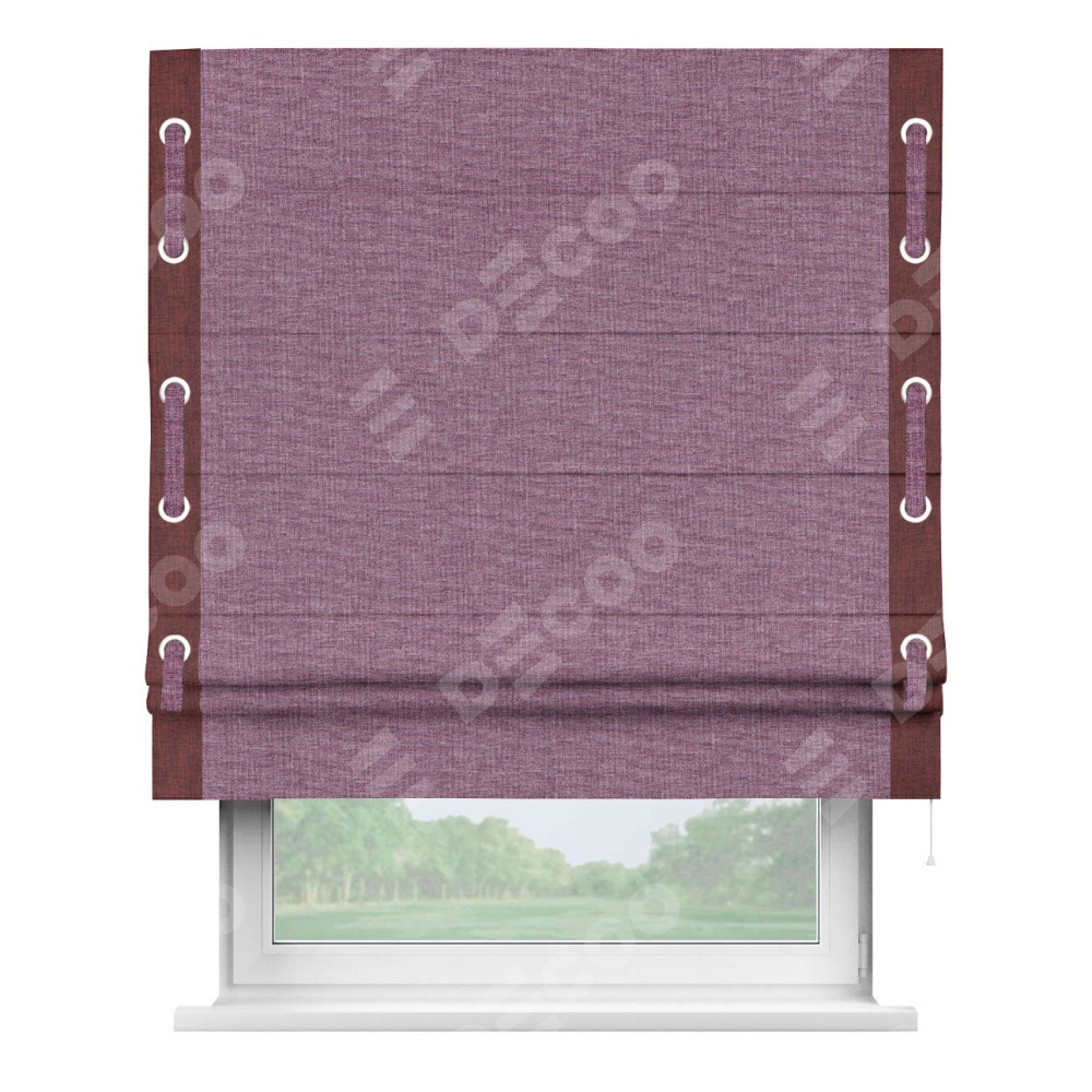 Римская штора «Кортин» с кантом Стрим Дуо (люверсы с пояском), для проема, ткань лён кашемир сиреневый