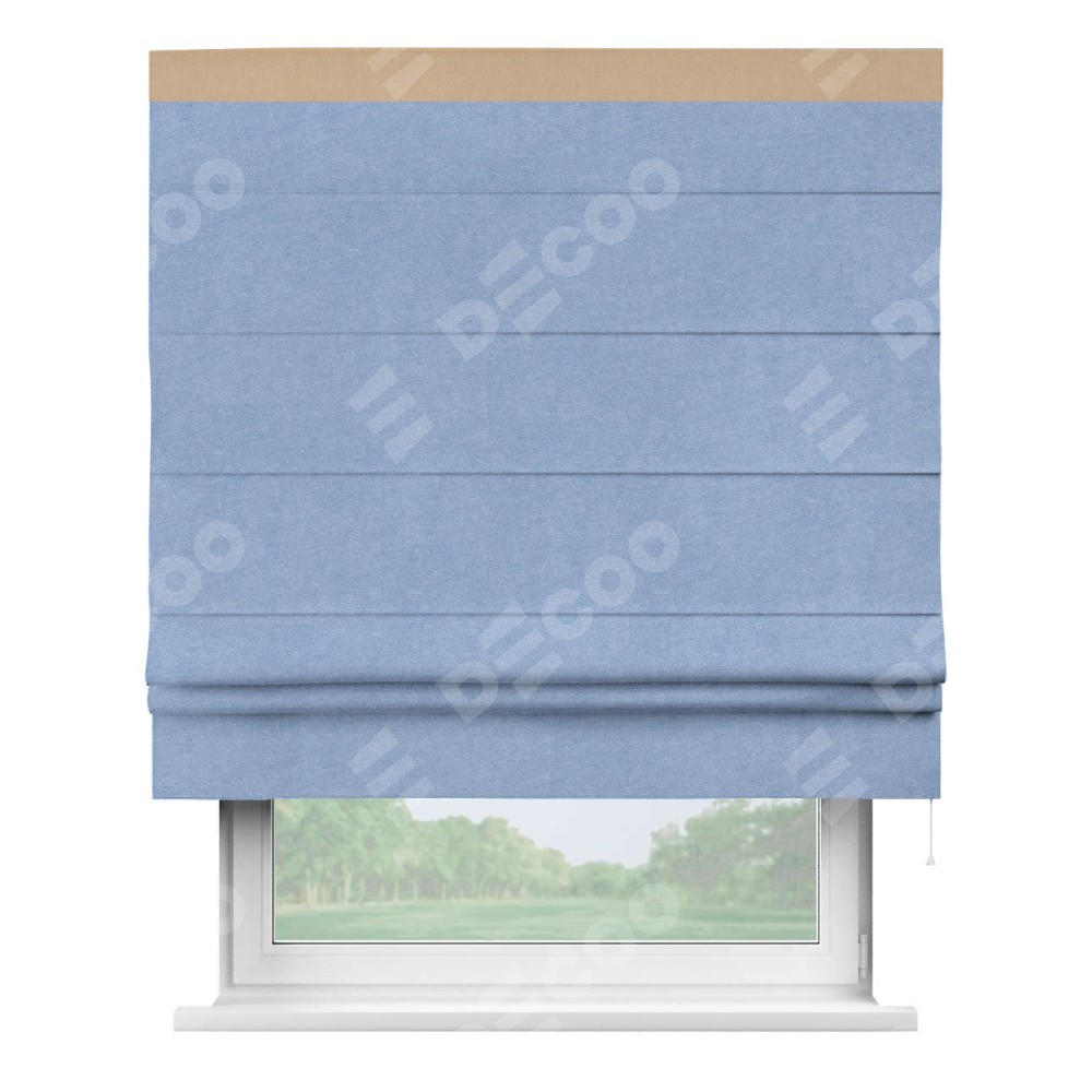 Римская штора «Кортин» для проема, вельвет васильковый с кантом Кинг