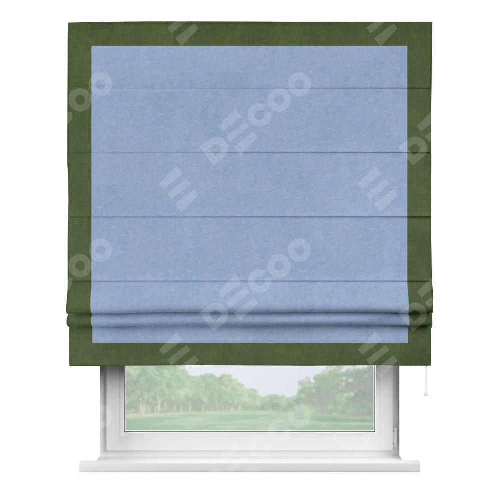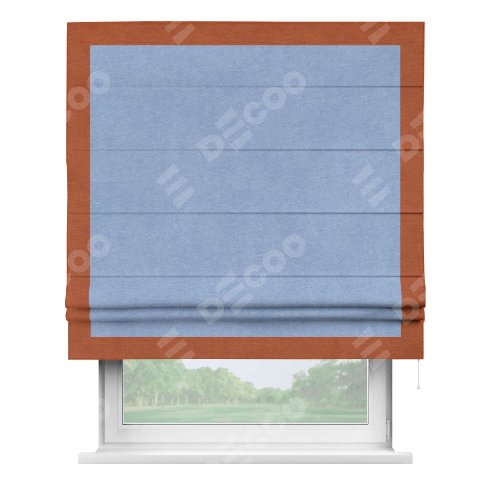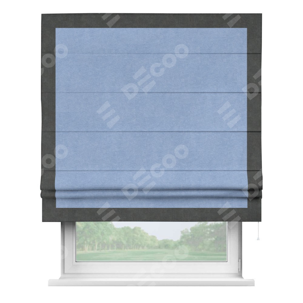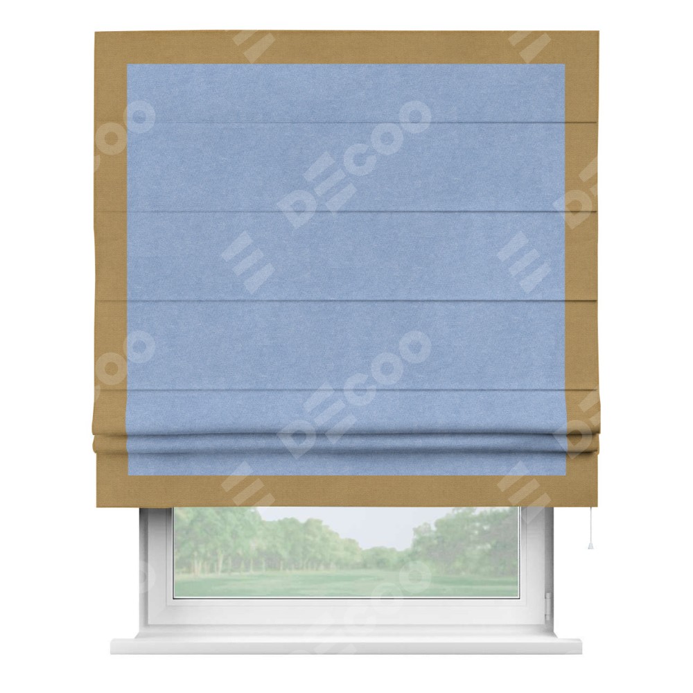 Римская штора «Кортин» для проема, вельвет васильковый с кантом Чесс