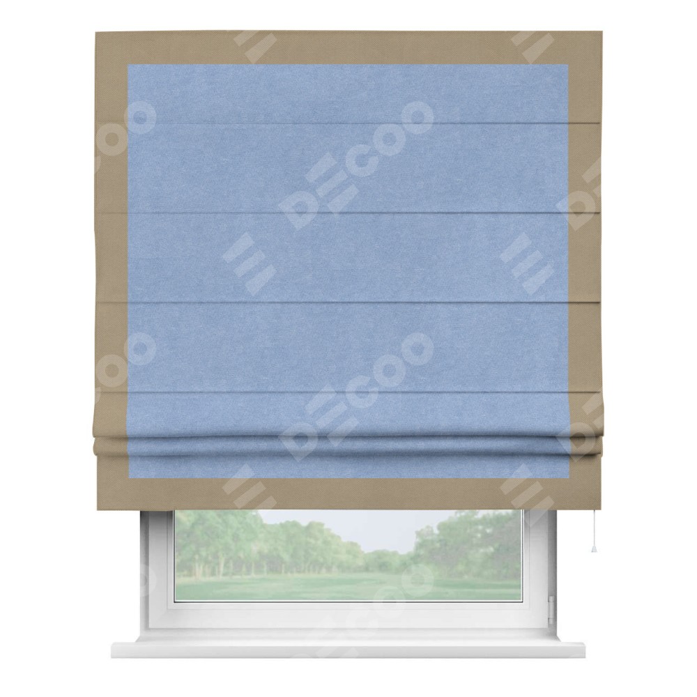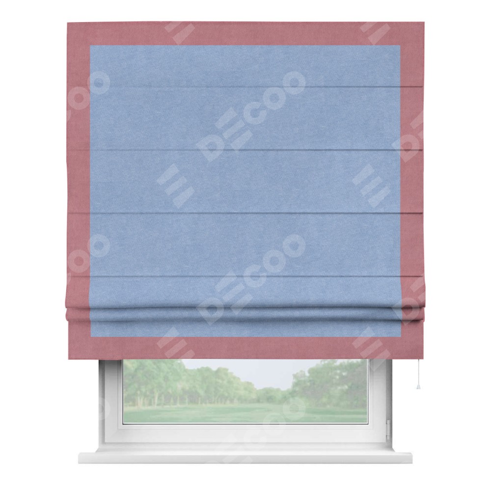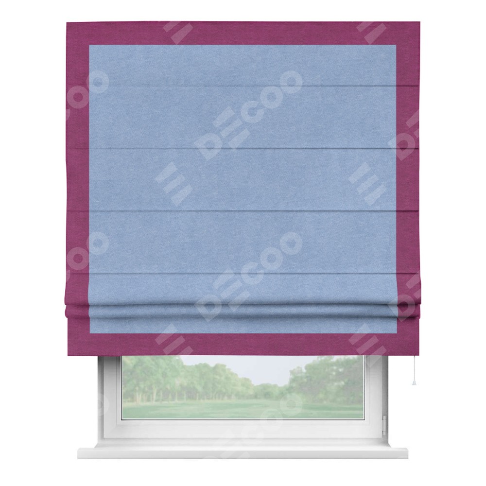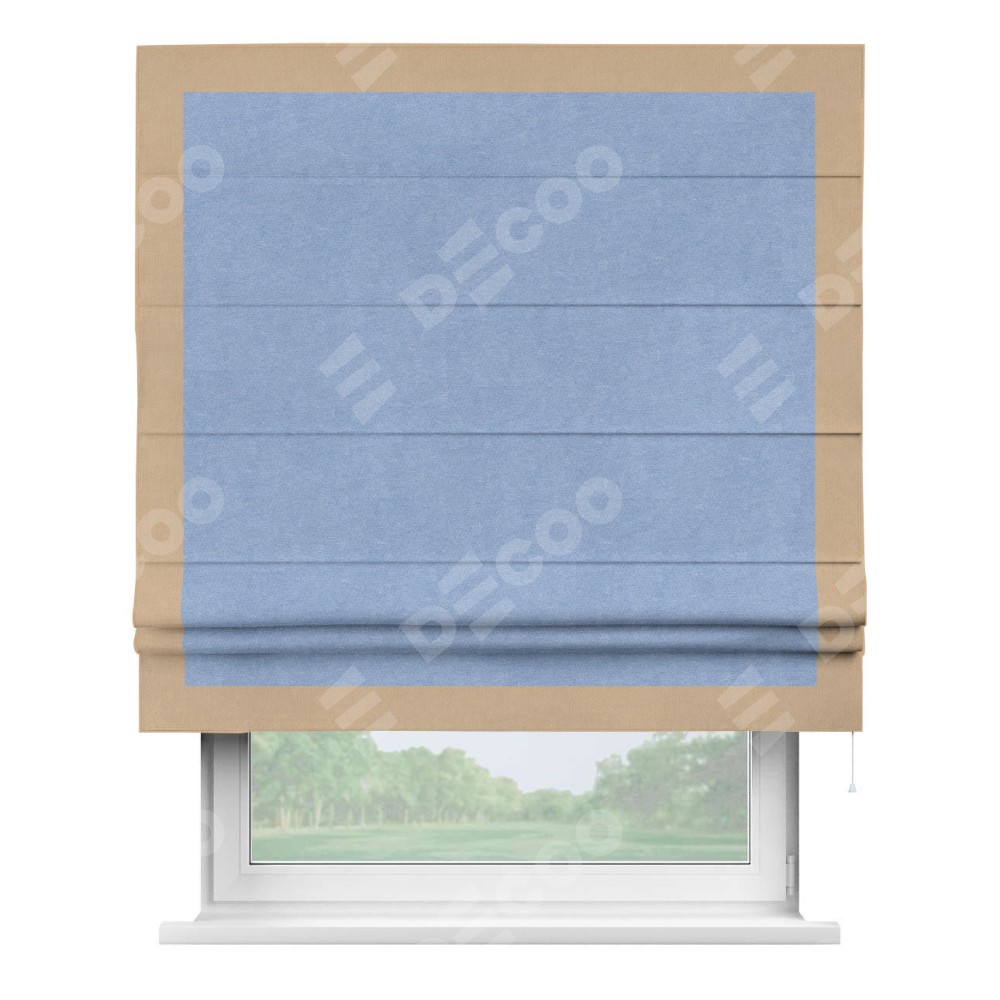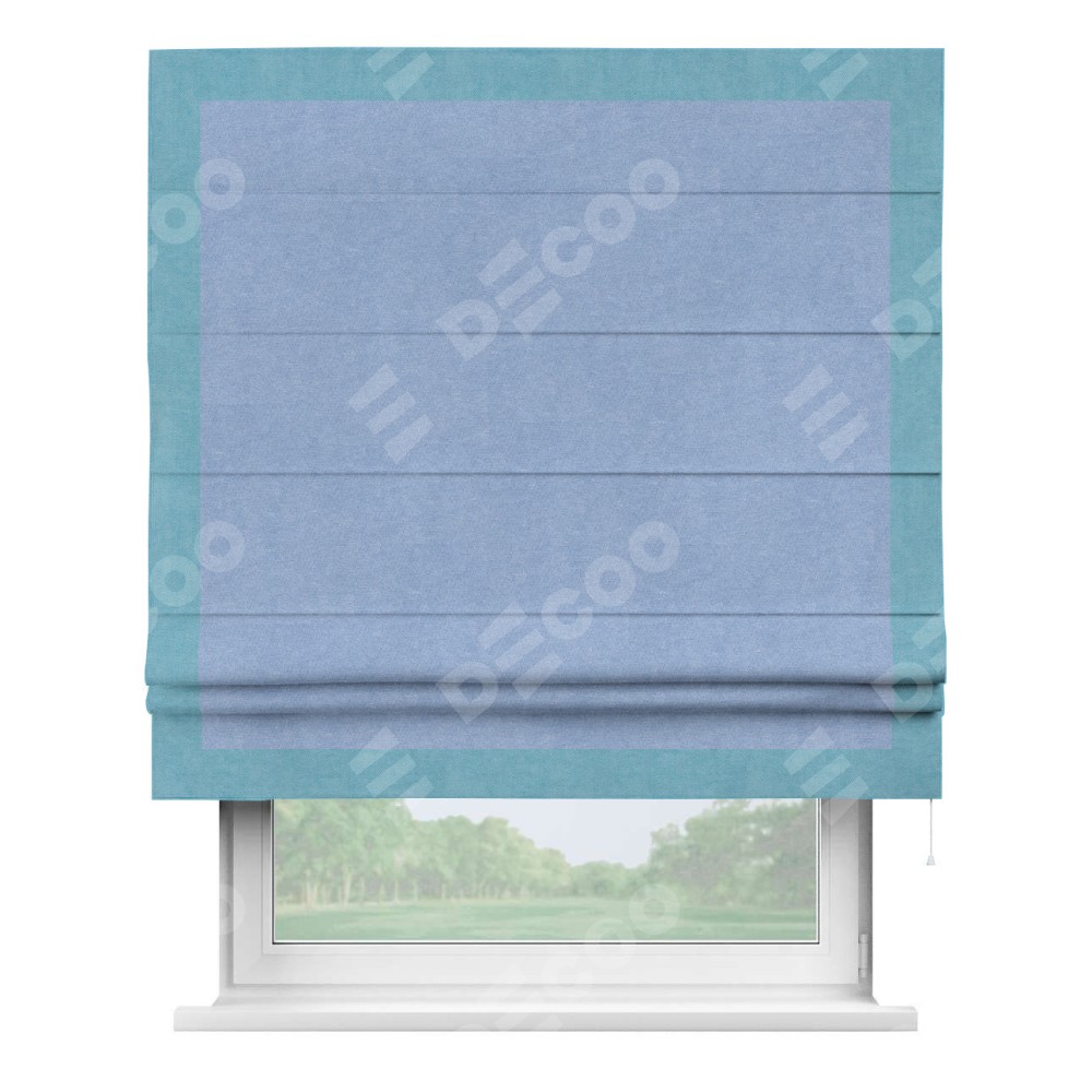 Римская штора «Кортин» для проема, вельвет васильковый с кантом Чесс