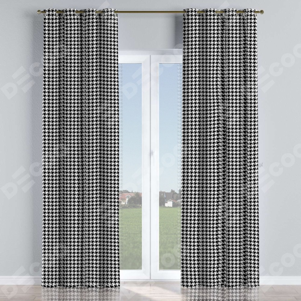 Комплект прямых штор, от производителя «Cortin», пошиты из ткани блэкаут с нанесением сублимационной печати «Гусиные лапки» черно-белый». Данная модель пошита на люверсах, комплектуется на выбор круглым карнизом и подходит для монтажа на стену или потолок. Прямые шторы на люверсах шьются по стандарту с коэффициентом 1/2 (на 100 см. ширины проёма 200 см. ширины ткани), отличительным преимуществом данной модели является простой способ монтажа. Достаточно повесить ее на трубу и штора готова!