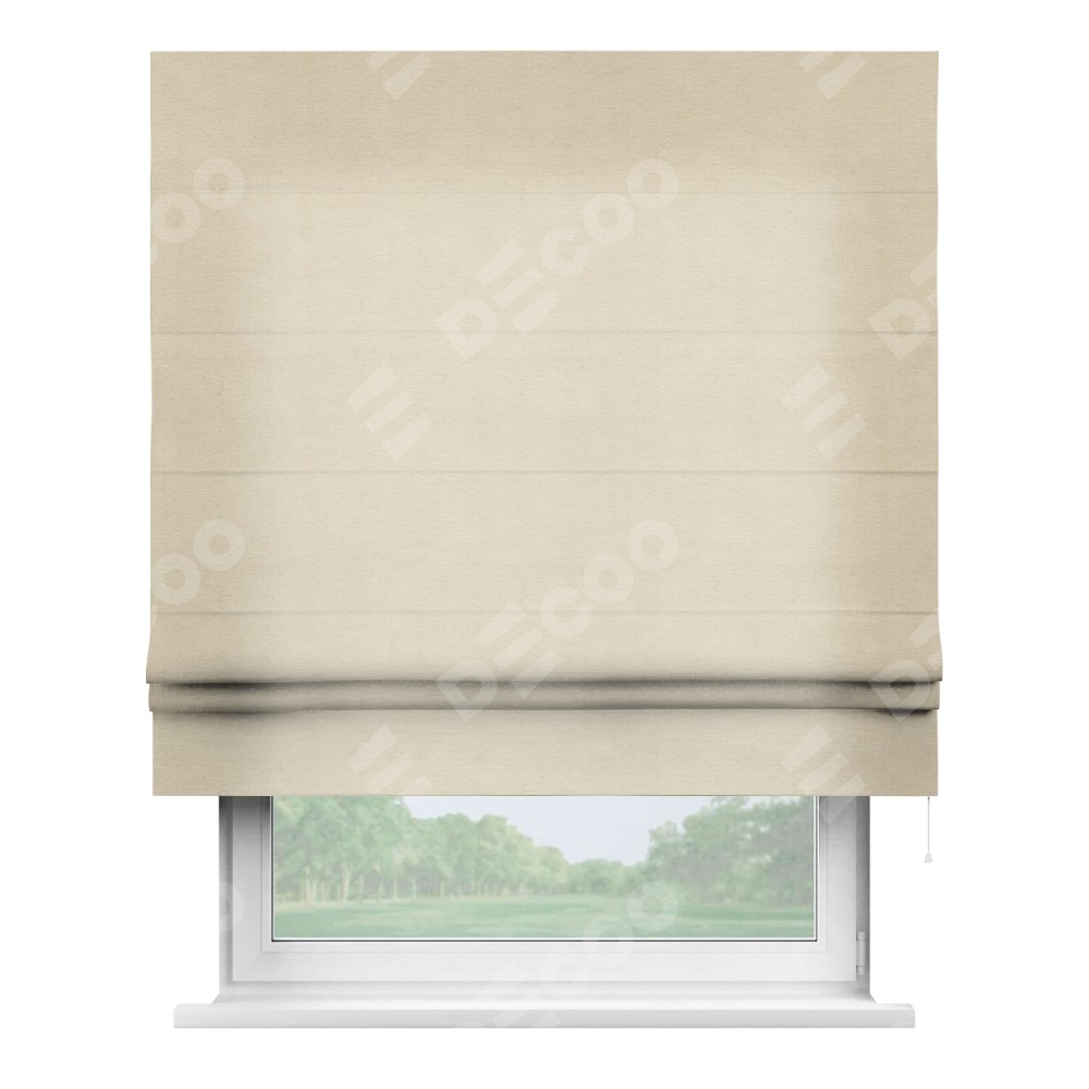 Римская штора производителя «Cortin», используется для проёма, пошита из ткани лён кашемир шампань, артикул ткани 17205. Имеет универсальный механизм и подходит для монтажа: на потолок, на стену и в нишу.