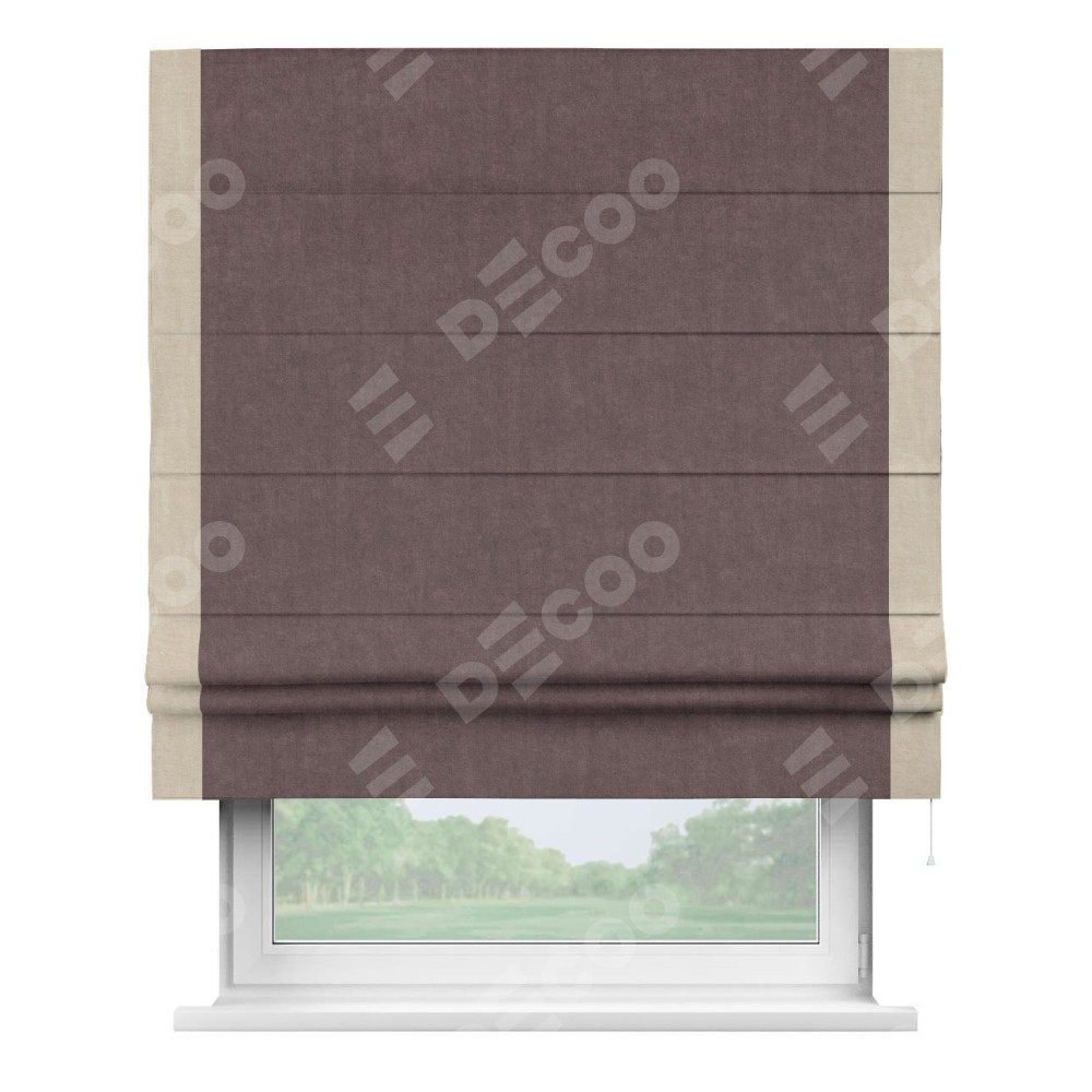 Римская штора «Кортин» для проема, канвас махагон, с кантом Стрим Дуо