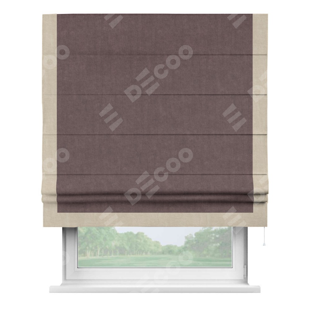 Римская штора «Кортин» для проема, канвас махагон, с кантом Виктория