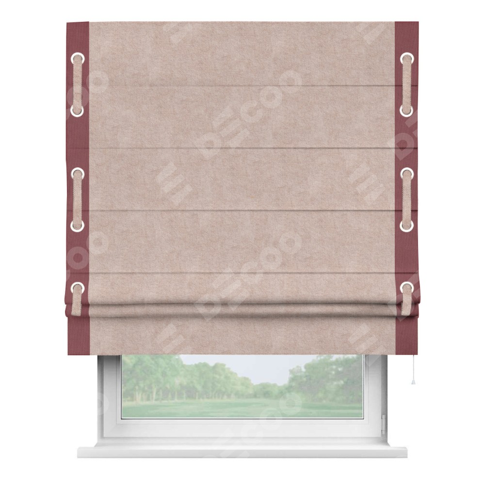 Римская штора «Кортин» для проема, канвас пудровый, с кантом Стрим Дуо (люверсы с пояском)