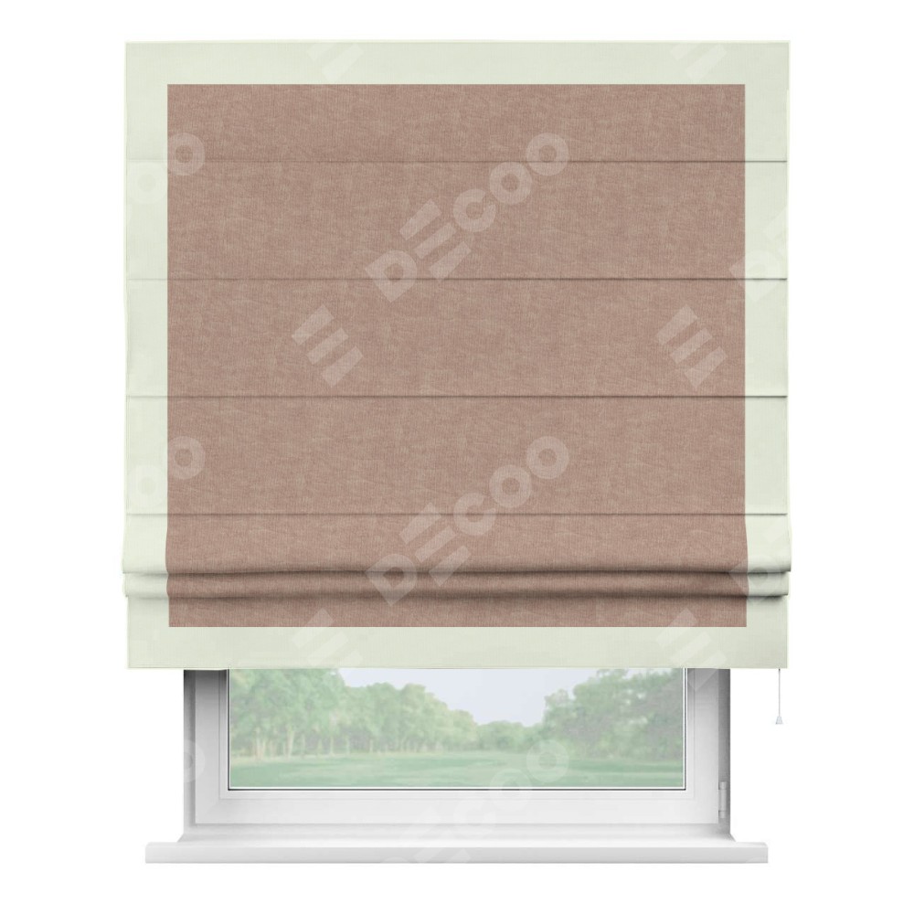 Римская штора «Кортин» для проема, канвас розовая пудра, с кантом Чесс
