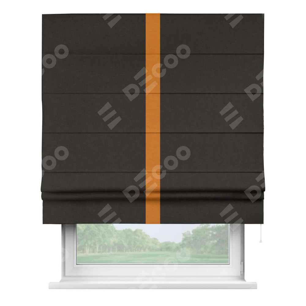 Римская штора «Кортин» для проема, канвас тёмно-коричневый, с кантом Хайвэй