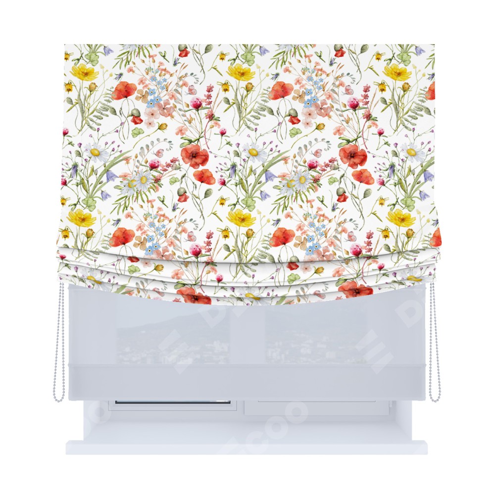 Римская штора «Кортин», день-ночь с мягкими складками, «Полевые маки»
