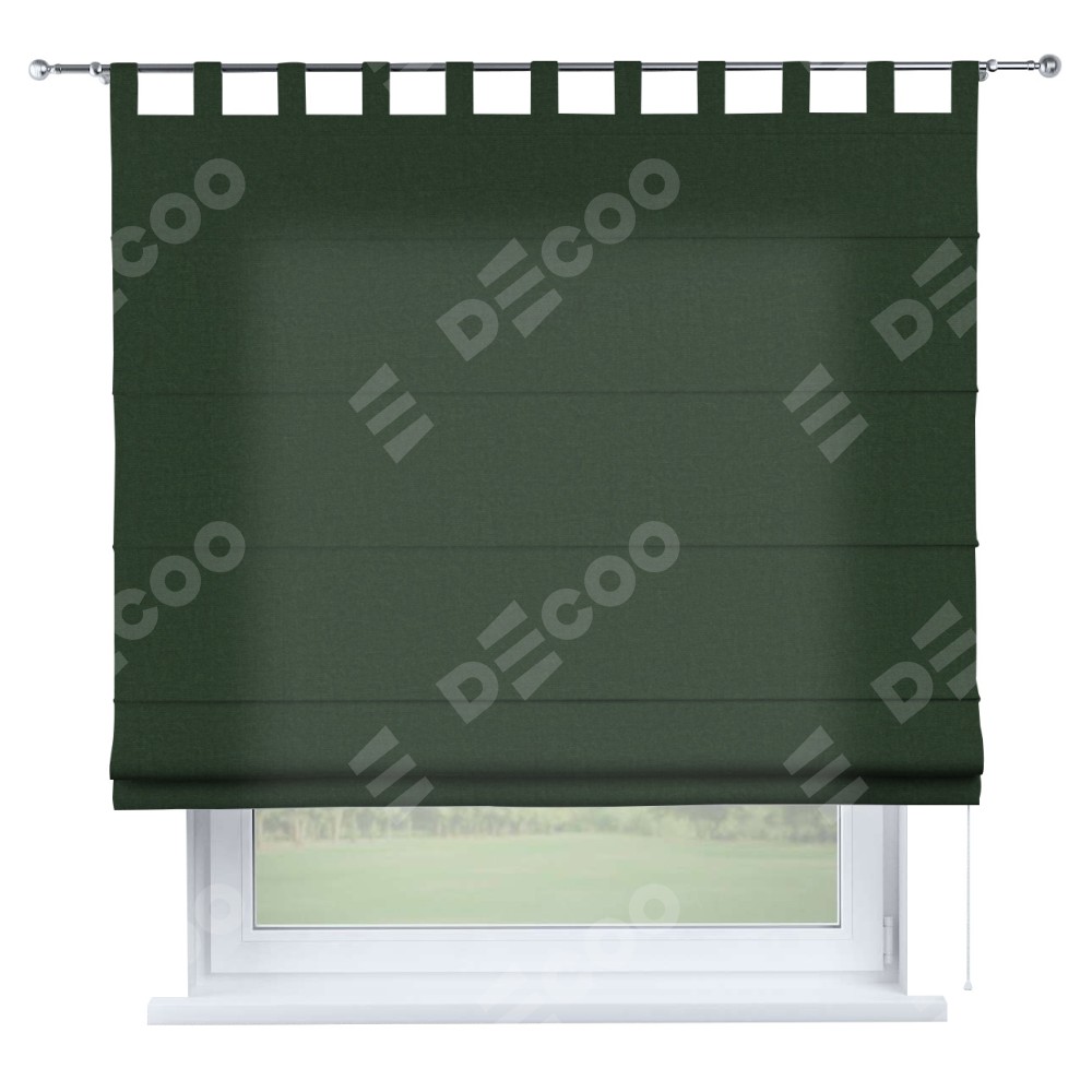 Римская штора производителя «Cortin», используется для проёма, пошита из ткани канвас глубокий зелёный, артикул ткани v-588. Данная модель пошита на петлях, комплектуется на выбор круглым карнизом и подходит для монтажа на стену. Римская штора на петлях имеет простую систему регулировки высоты, отличительным преимуществом данной модели является простой способ монтажа. Достаточно повесить ее на трубу и штора готова!