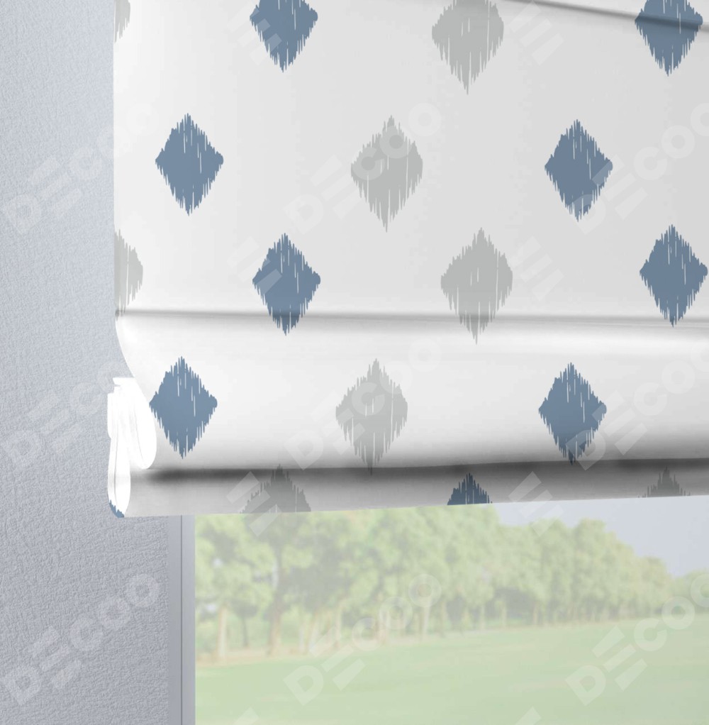 Римская штора «Кортин» на петлях «Икат ромбики»